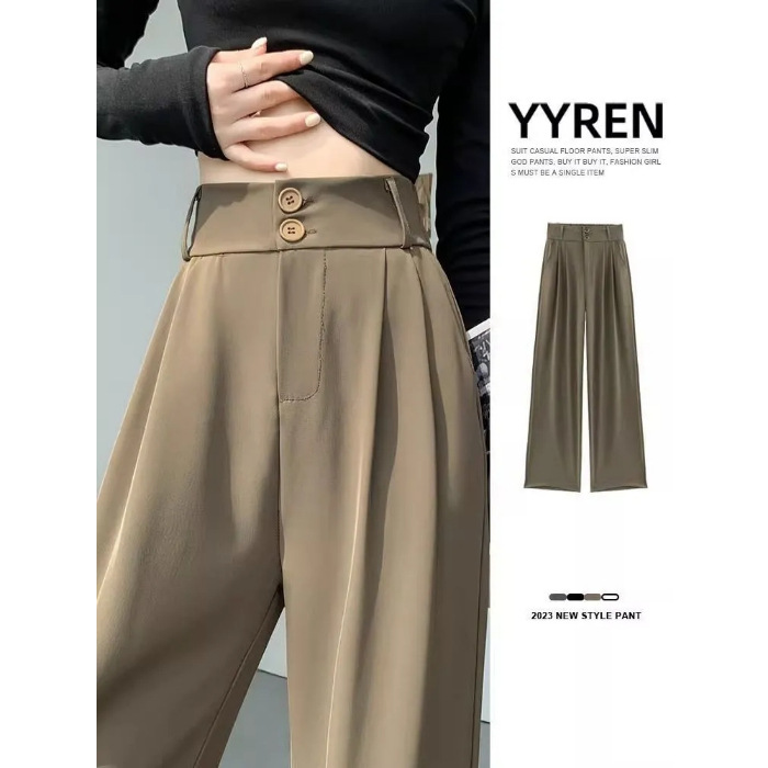 여성의 봄과 가을 2024 새로운 높은 허리 슬리밍 펜던트 스트레이트 캐주얼 느슨한 넓은 다리 바지스토어 가기