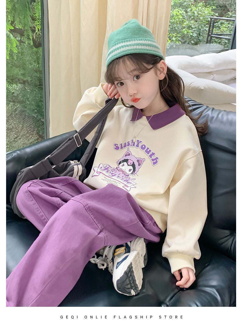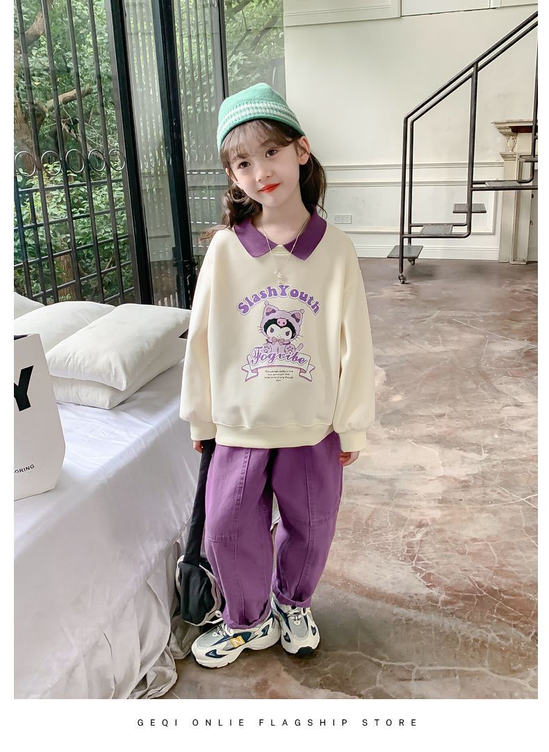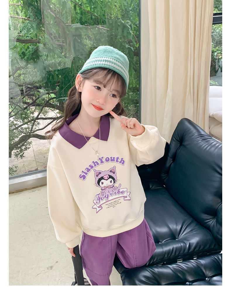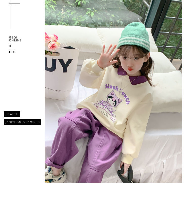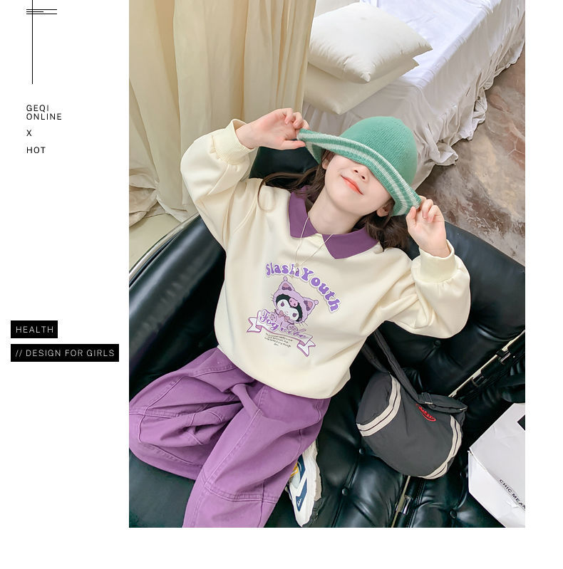 소녀 쿨로 미 스웨터 세트 2024 새로운 인터넷 인기 유행 소녀 봄과 가을 중 큰 어린이 폴로 셔츠 투피스 세트스토어 가기