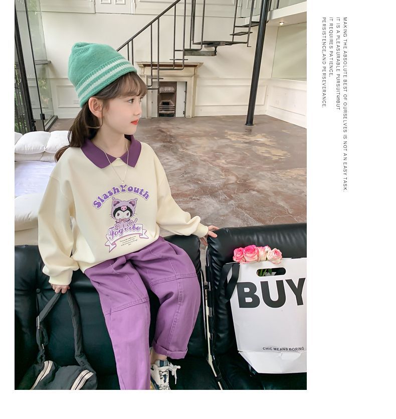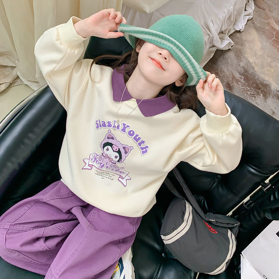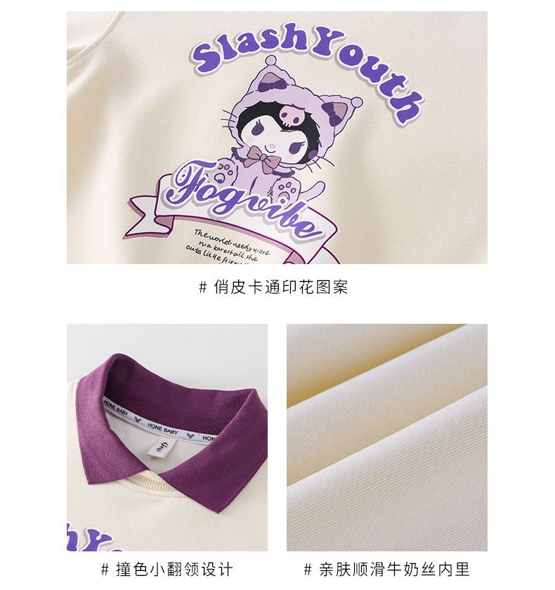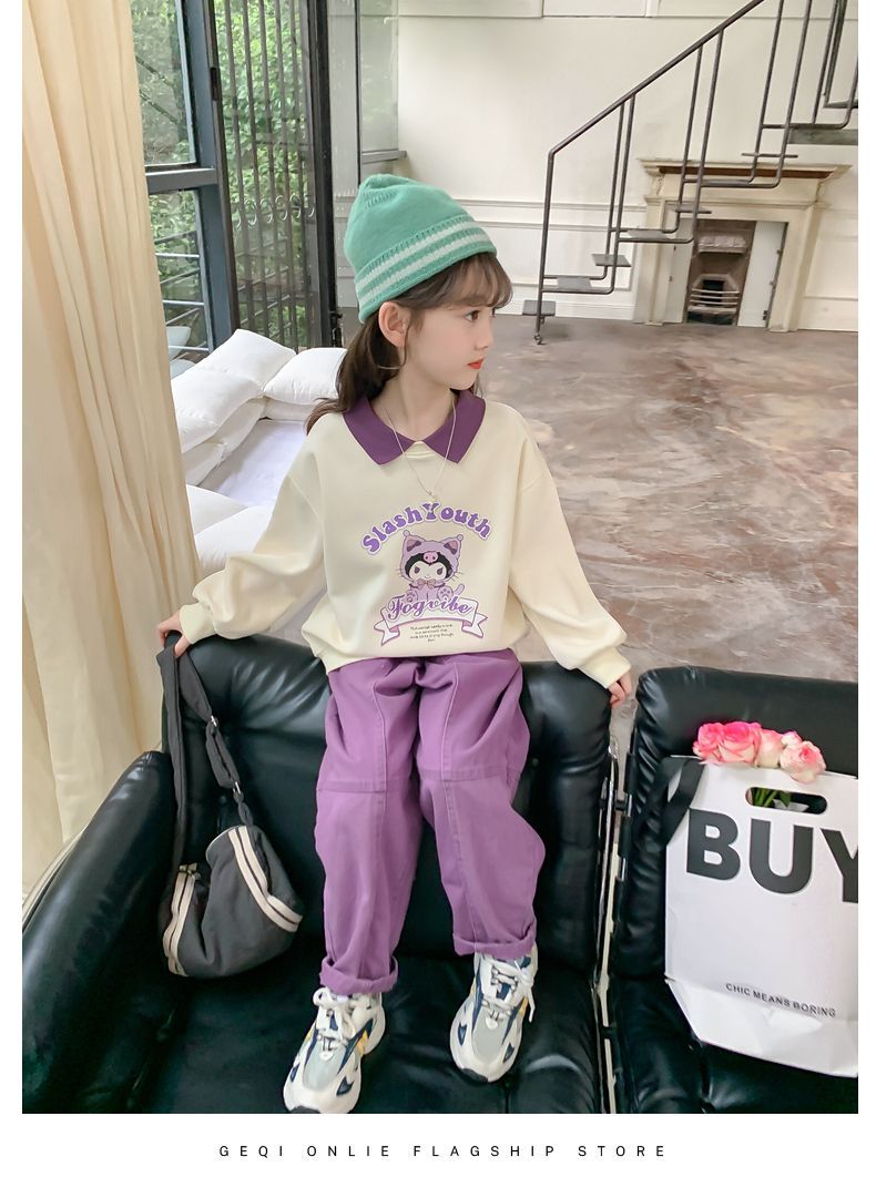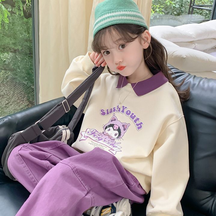 소녀 쿨로 미 스웨터 세트 2024 새로운 인터넷 인기 유행 소녀 봄과 가을 중 큰 어린이 폴로 셔츠 투피스 세트스토어 가기