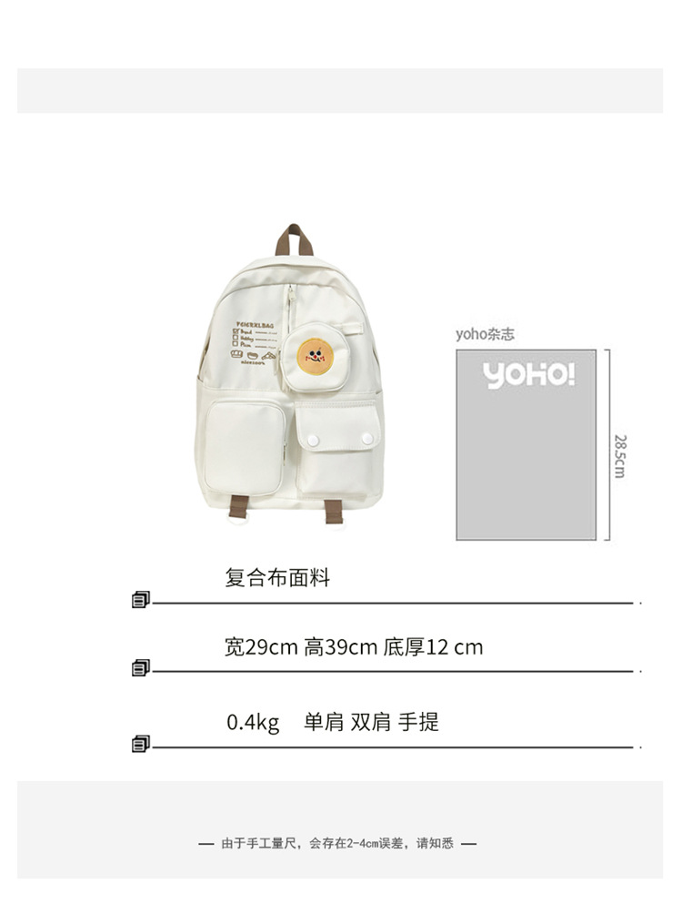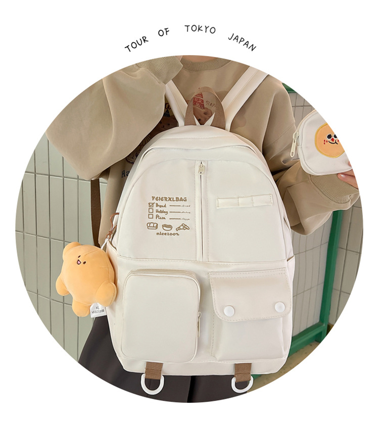 니치 디자인 고급스러운 일본식 귀여운 음식 펜던트 학교 가방 대용량 중학생 대학생 배낭 여성