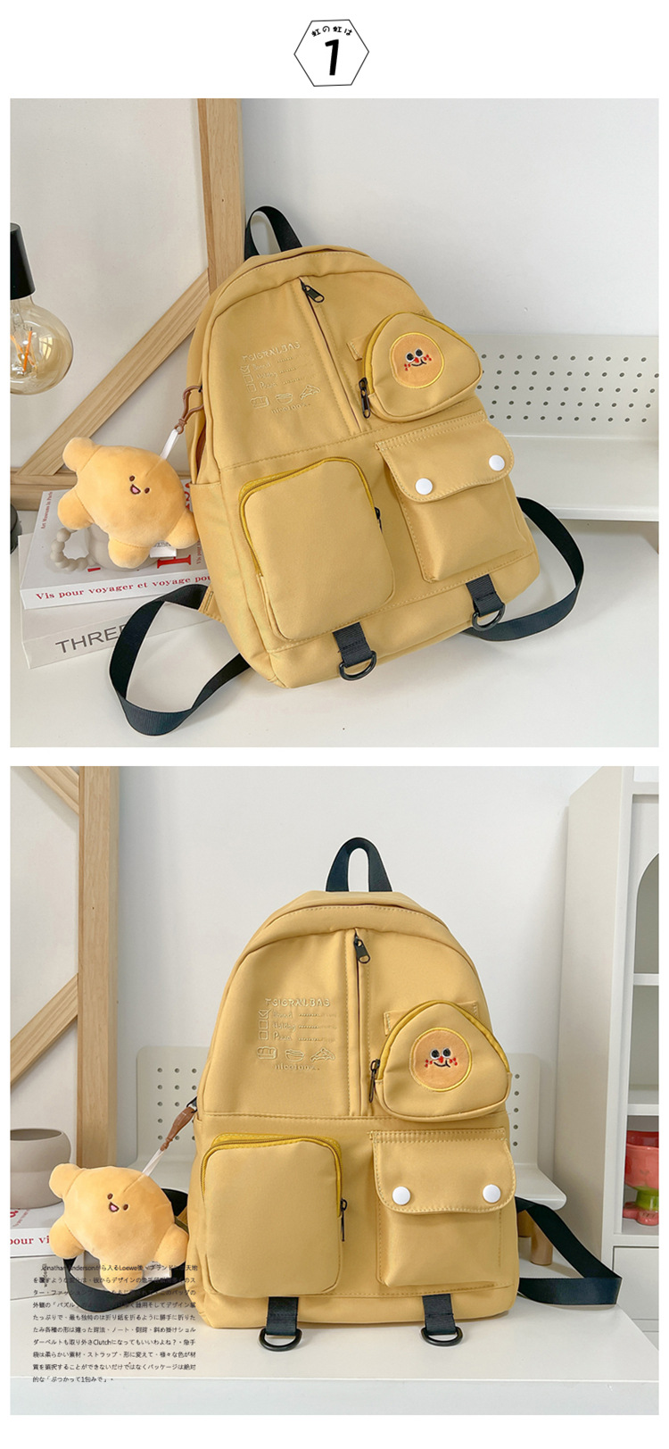 니치 디자인 고급스러운 일본식 귀여운 음식 펜던트 학교 가방 대용량 중학생 대학생 배낭 여성스토어 가기