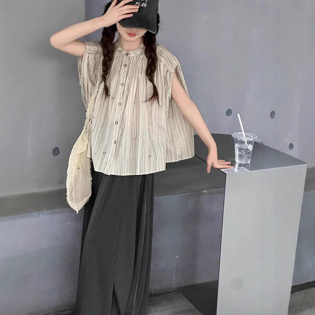 소녀의 여름 치마 세트 2025 새로운 스타일 큰 어린이 줄무늬 반팔 셔츠 긴 치마 투피스 세트스토어 가기