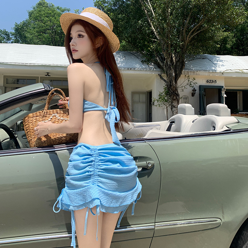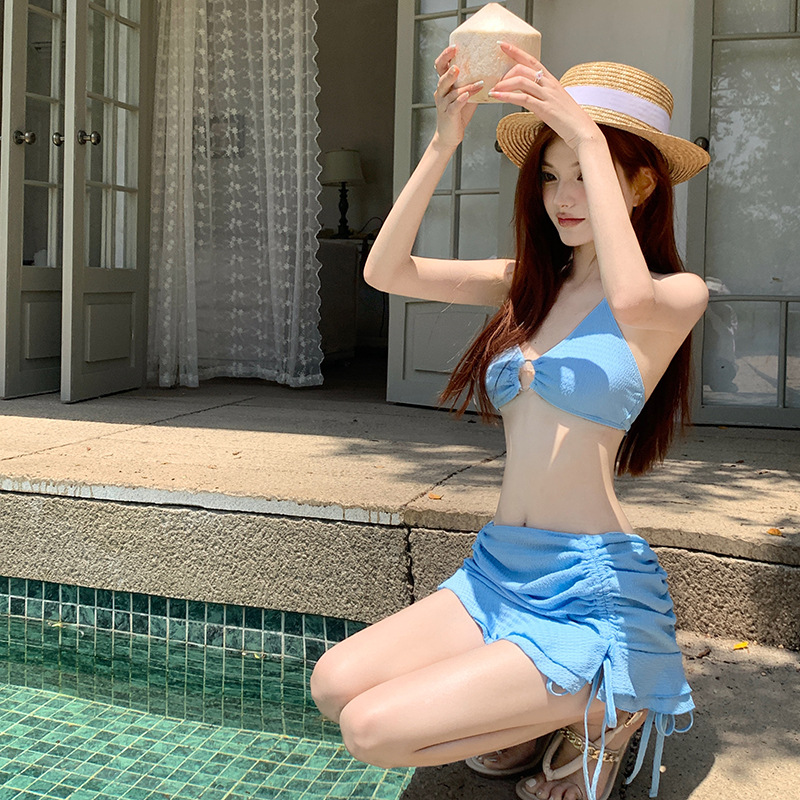 공장 도매 단색 비키니 섹시한 백리스 패션 원 숄더 분할 삼각형 숙녀 수영복 새로운 한국어 버전스토어 가기