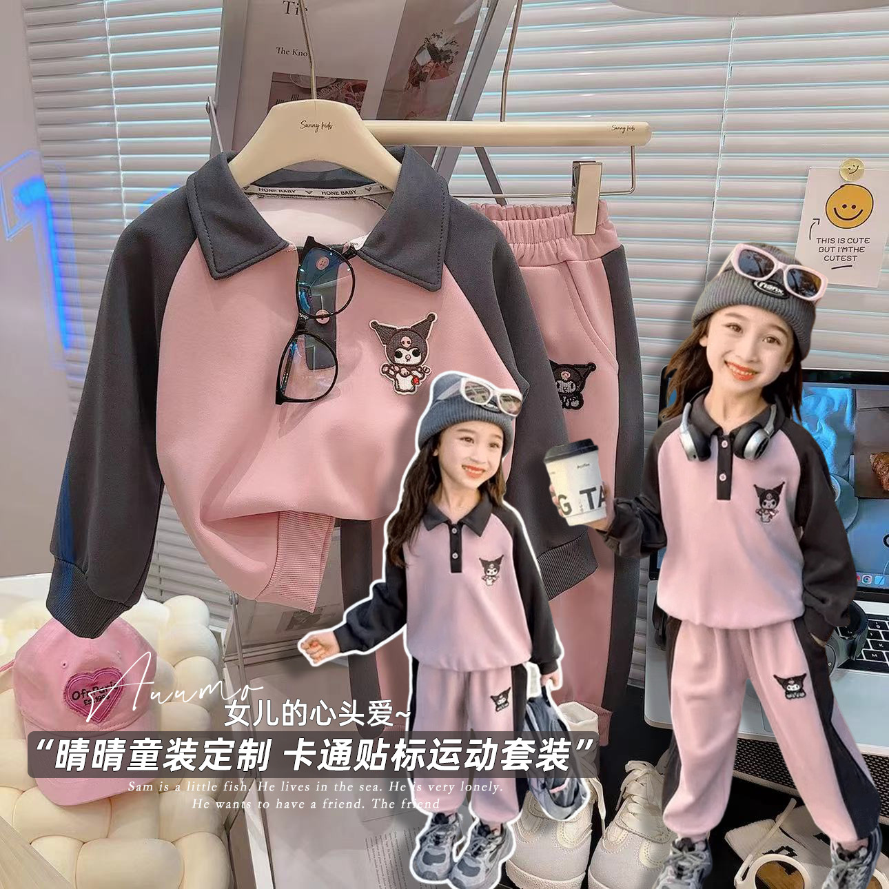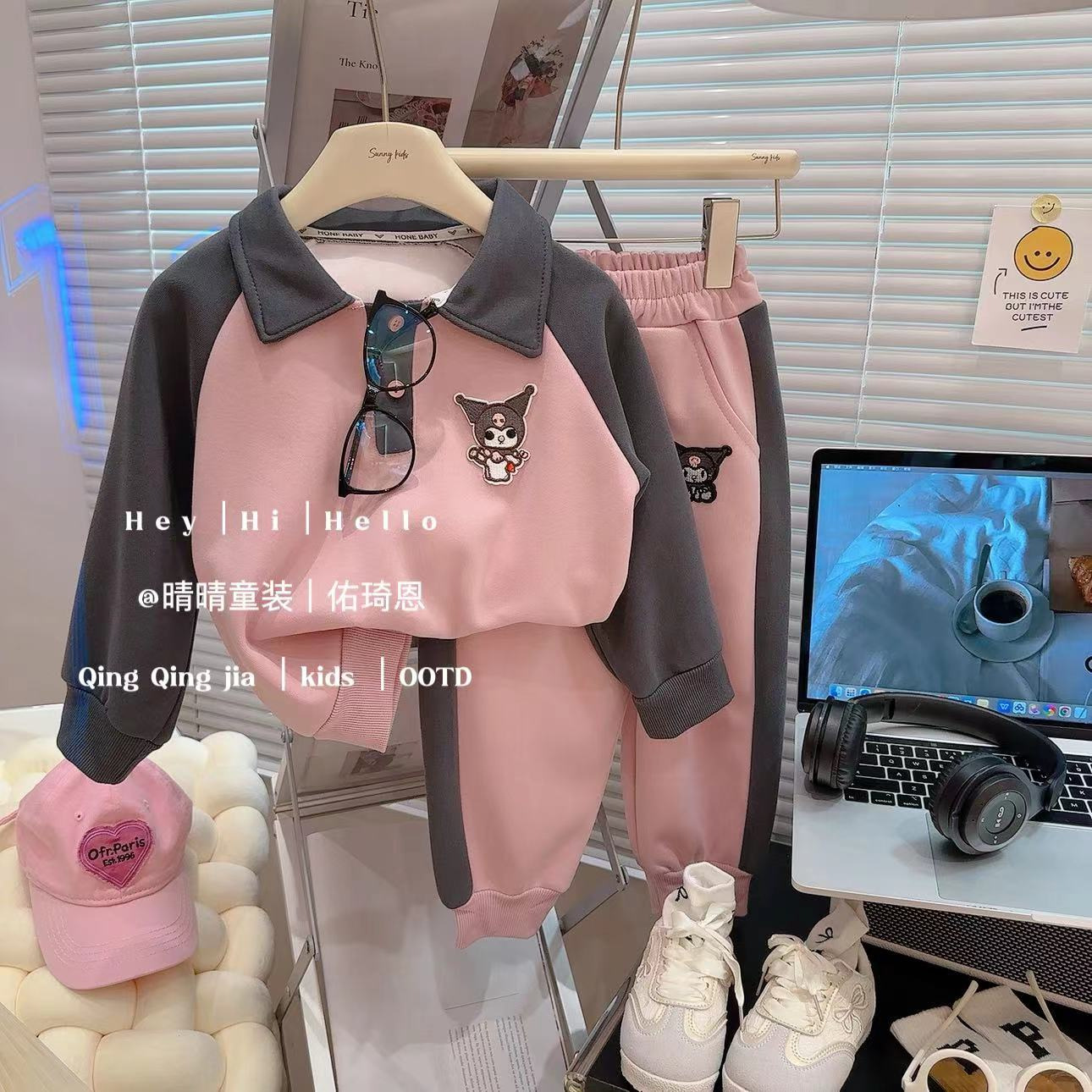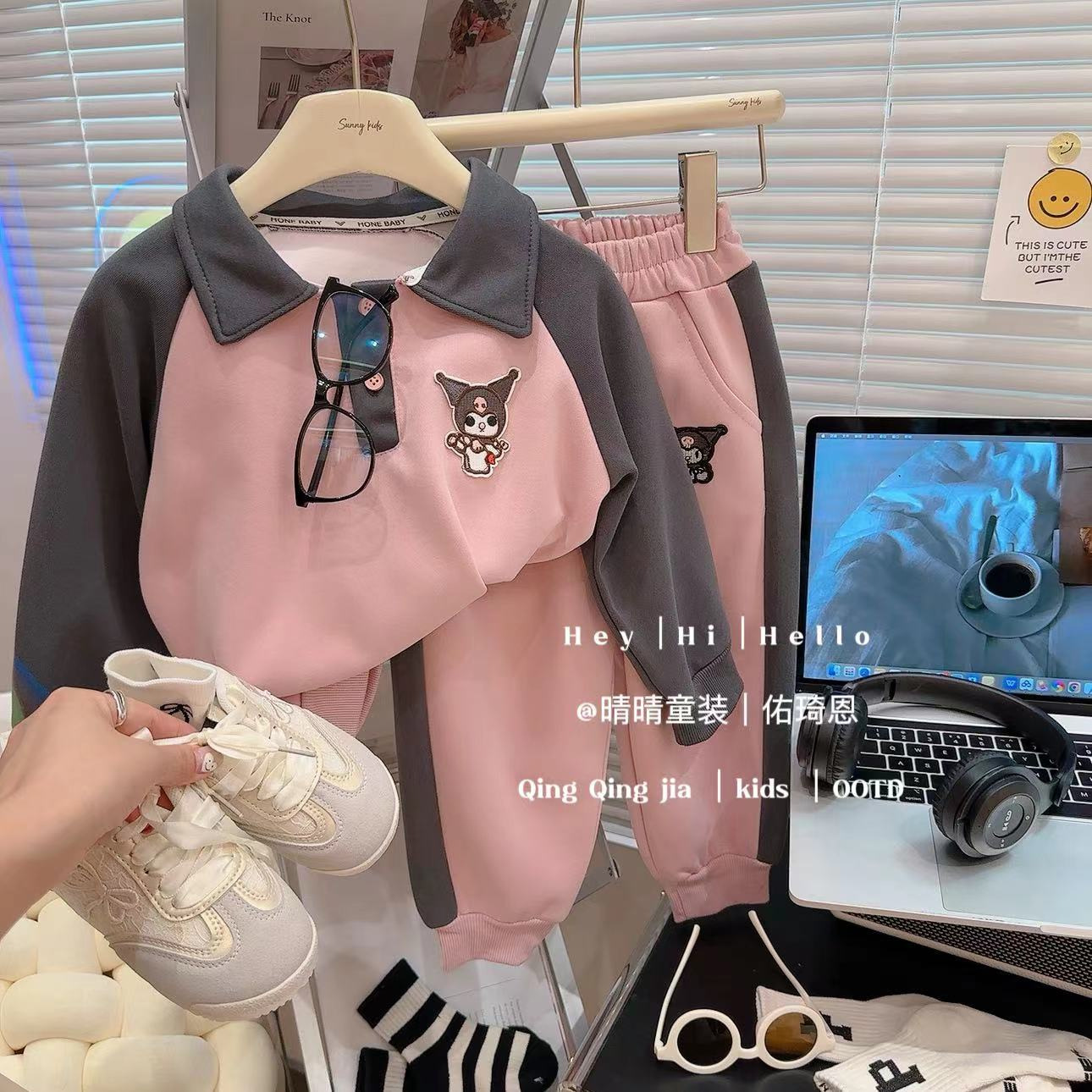 여자 가을 세트 한국 학술 스타일 쿨로 미 옷깃 스웨터 캐주얼 바지 투피스 세트 2024 봄과 가을 새로운스토어 가기