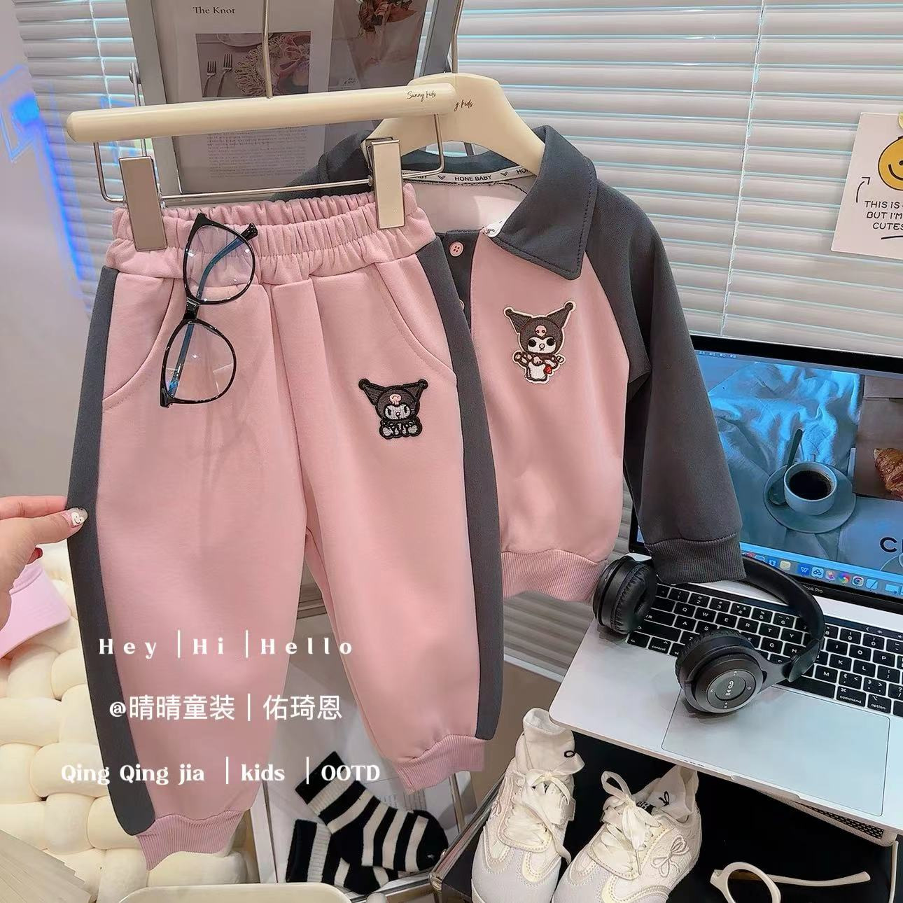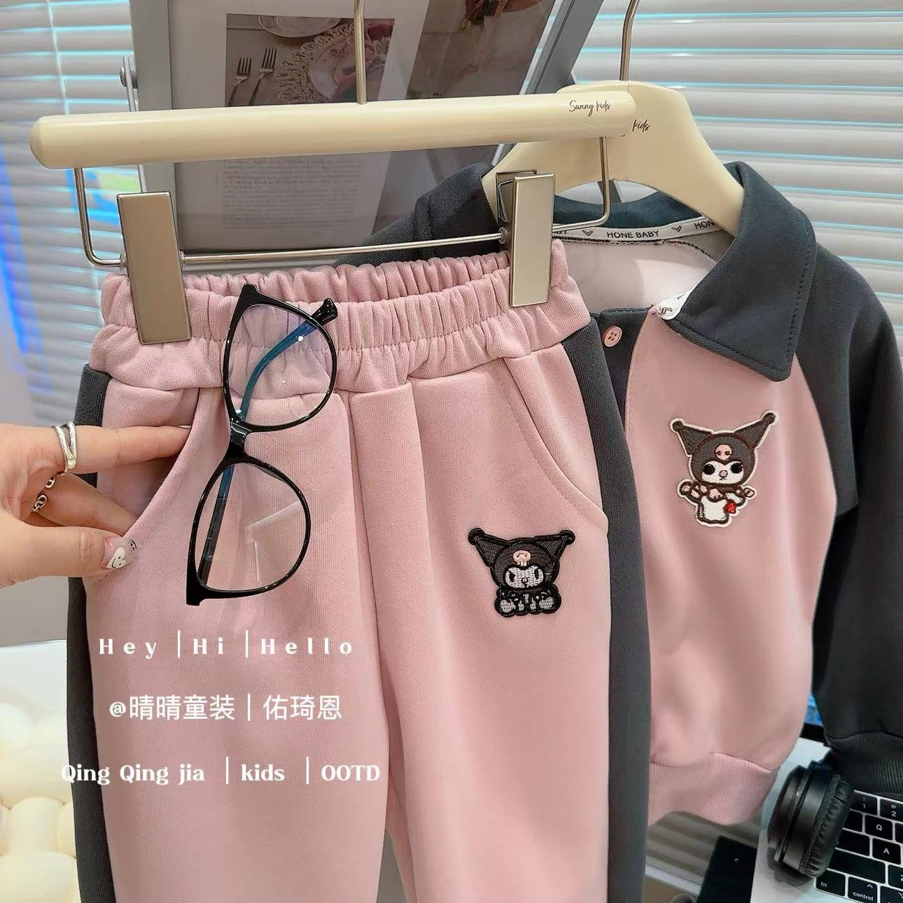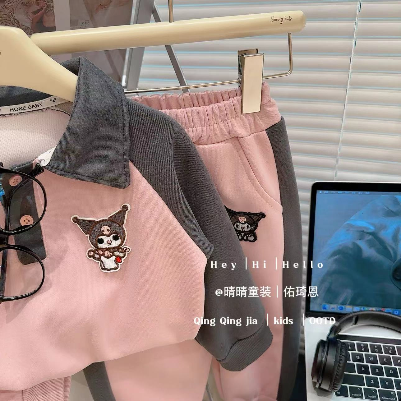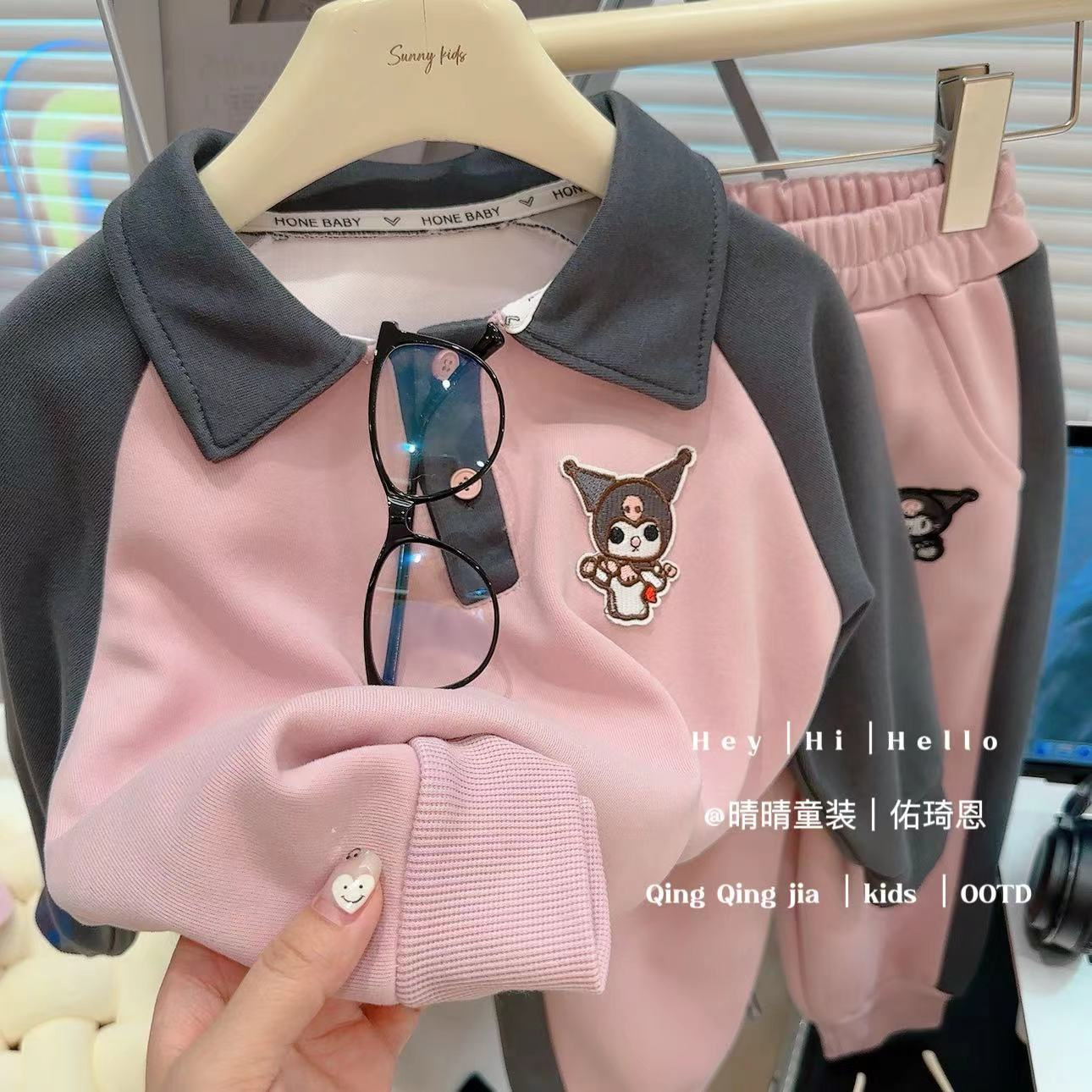 여자 가을 세트 한국 학술 스타일 쿨로 미 옷깃 스웨터 캐주얼 바지 투피스 세트 2024 봄과 가을 새로운스토어 가기