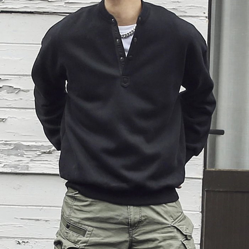 일본식 레트로 가을과 겨울 남자 헨리 칼라 긴팔베이스 셔츠 캐주얼 느슨한 풀오버 스웨터 플러스 사이즈 남성용 트렌디스토어 가기
