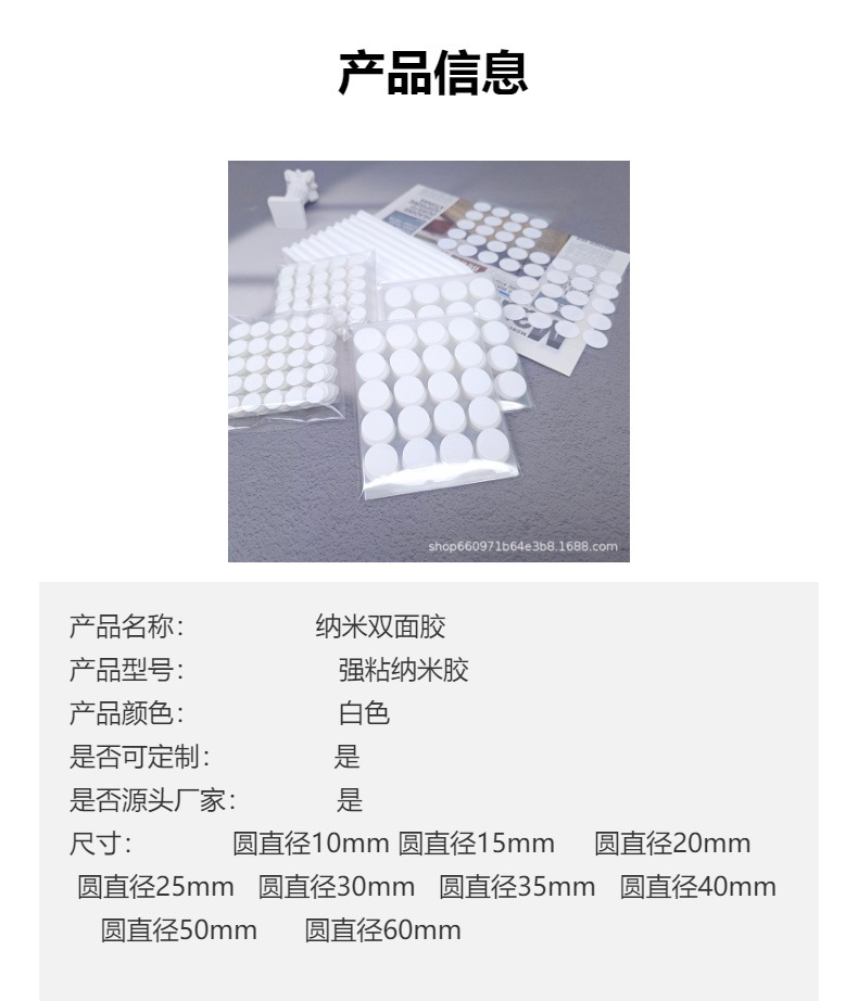 • 60mm 나노 접착제 일반 스타일, 0.5mm 두께, (펠릿당 가격)