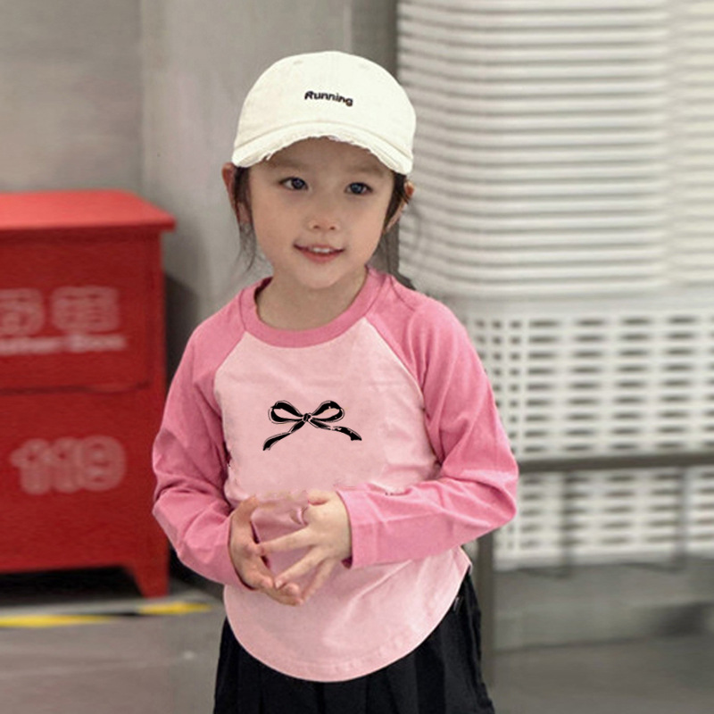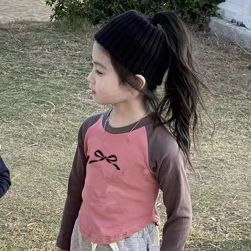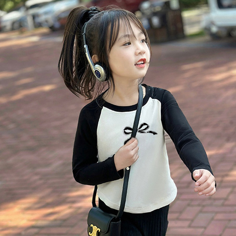 소녀 면 긴팔 티셔츠 2024 봄과 가을 소녀 아기 얇은 티셔츠 불규칙한 슬림 핏 짧은 탑 트렌디스토어 가기