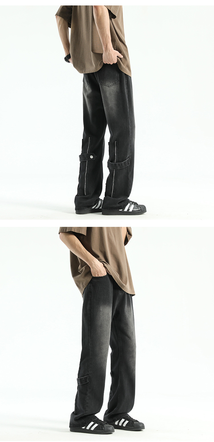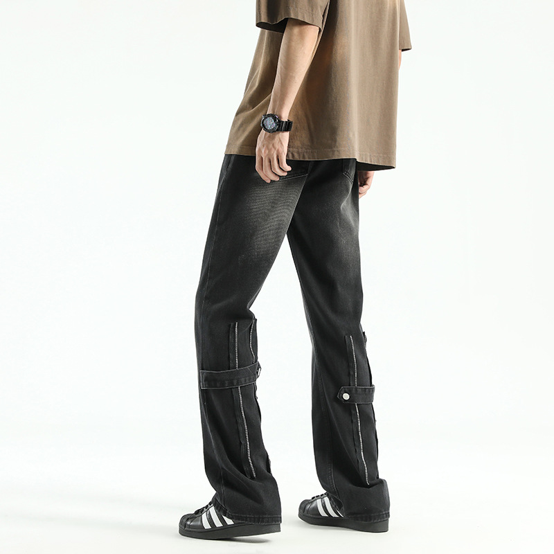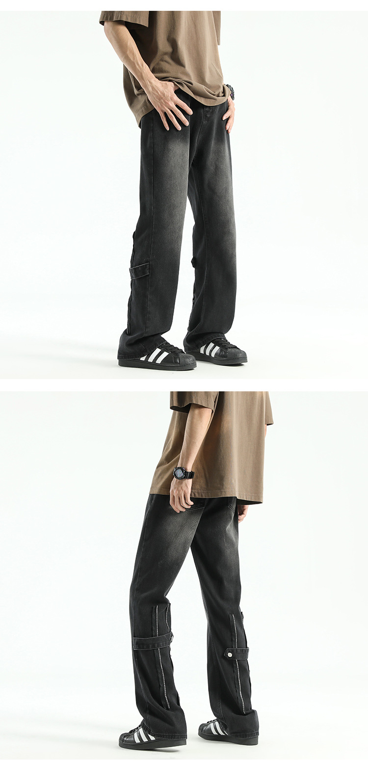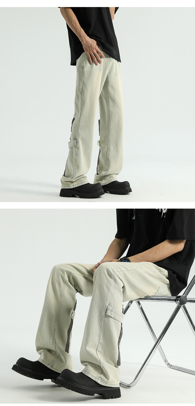 남자 청바지 가을 새로운 느슨한 올매치 스트레이트 레트로 바지 남자 유행 브랜드 유행 잘 생긴 캐주얼 바지스토어 가기