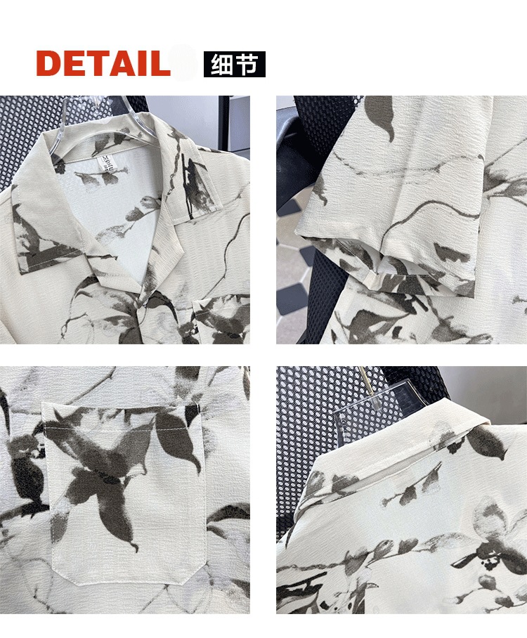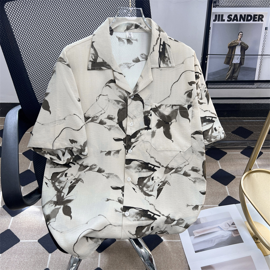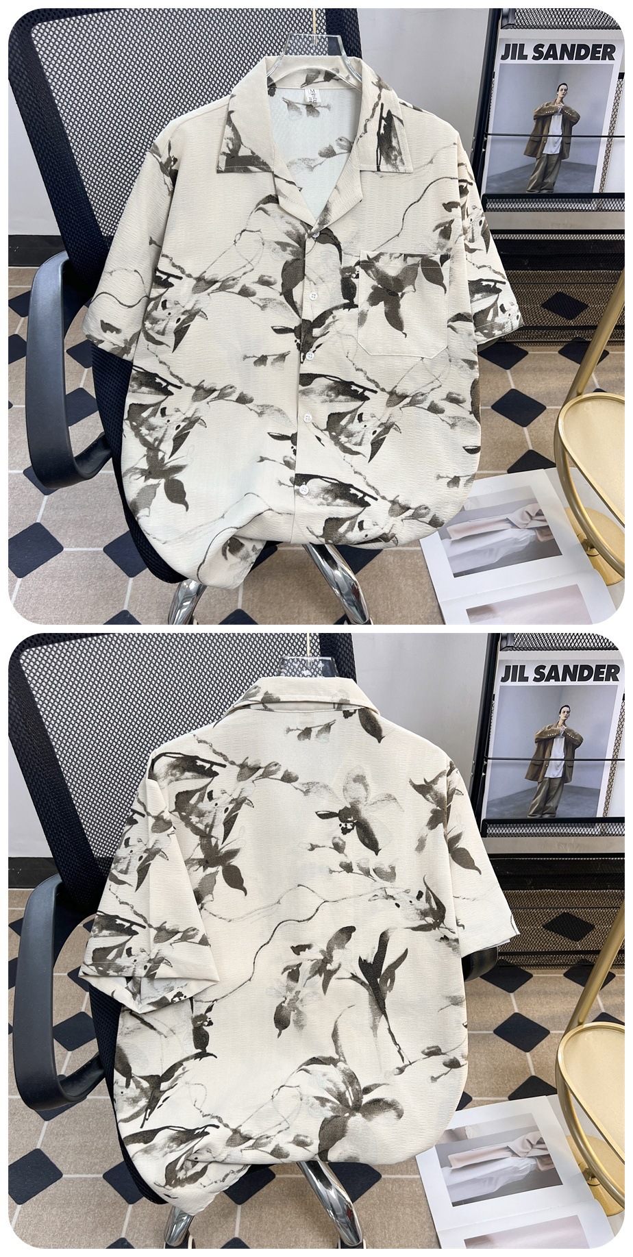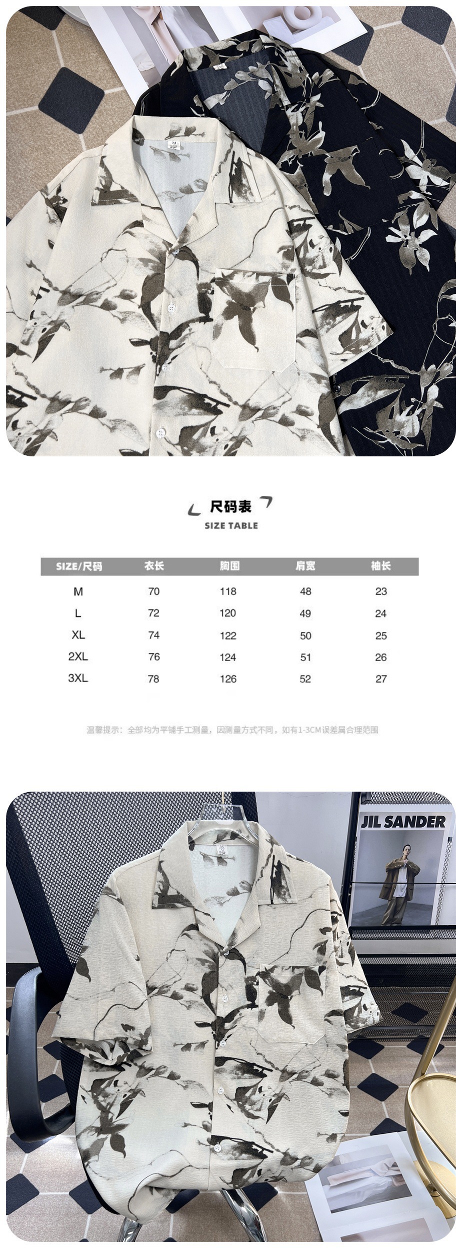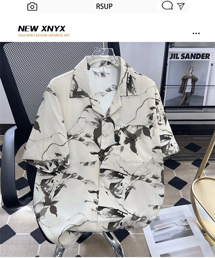 버려진 꽃 반팔 셔츠 소년 쿠바 칼라 여름 얇은 느슨한 투약 캐주얼 십대 반팔 셔츠
