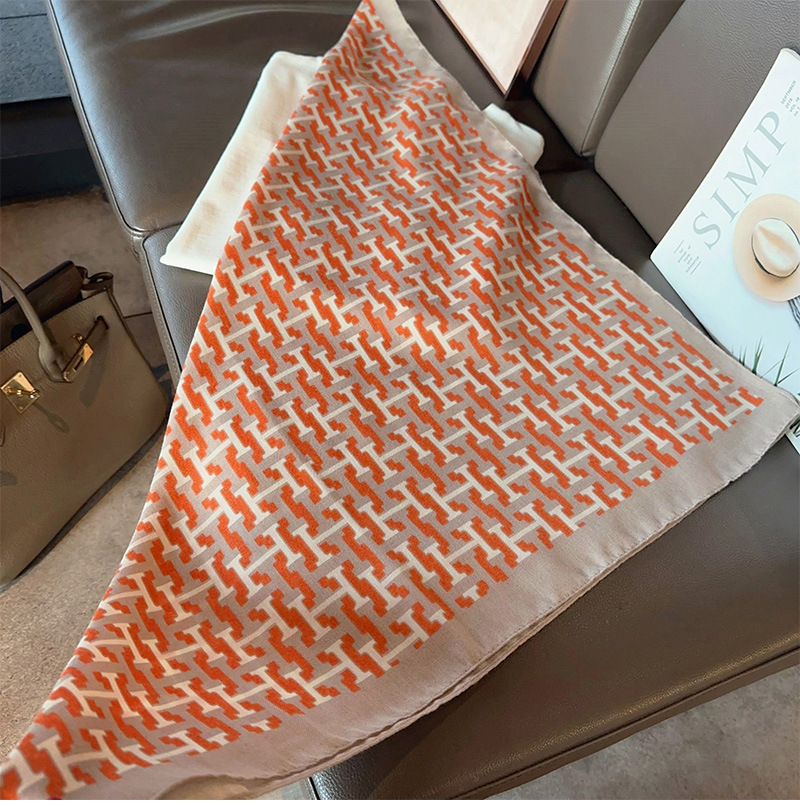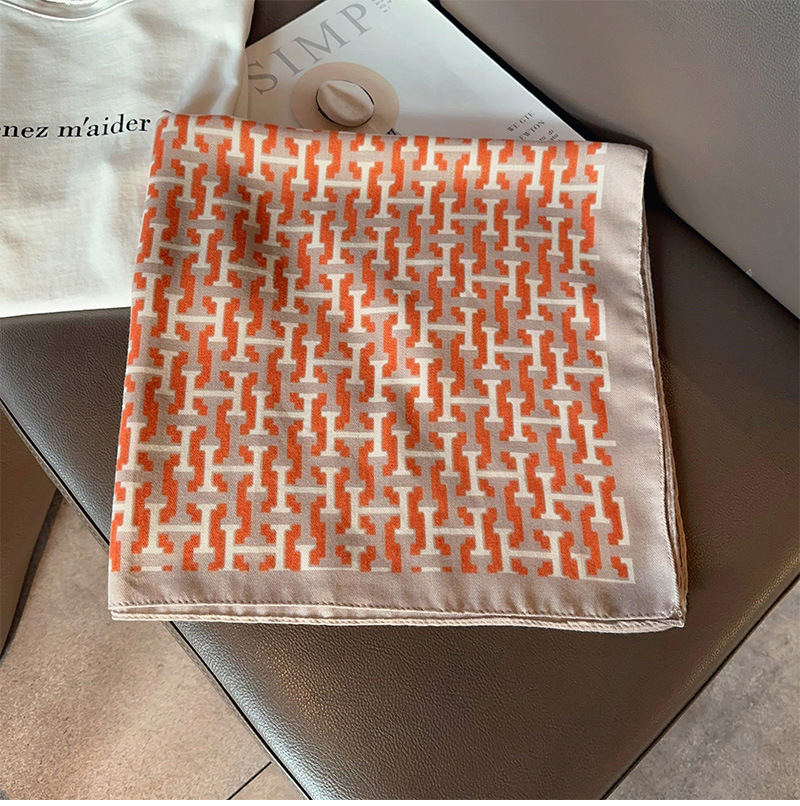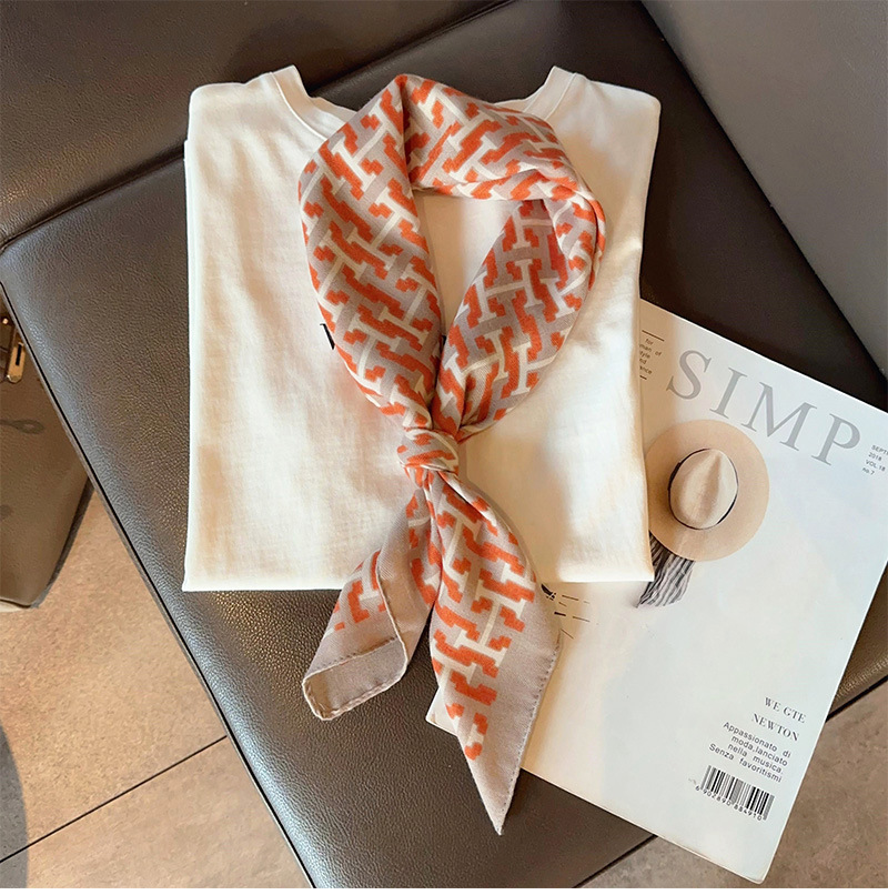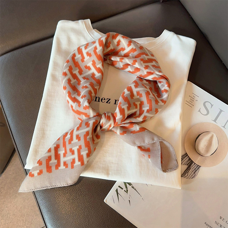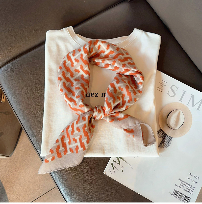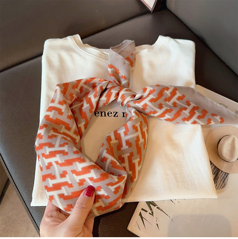여성을위한 면과 린넨 작은 사각형 스카프 봄 새로운 H 문자 오렌지 실크 스카프와 셔츠 기질 한국 스타일 작은 스카프 머리띠 얇은