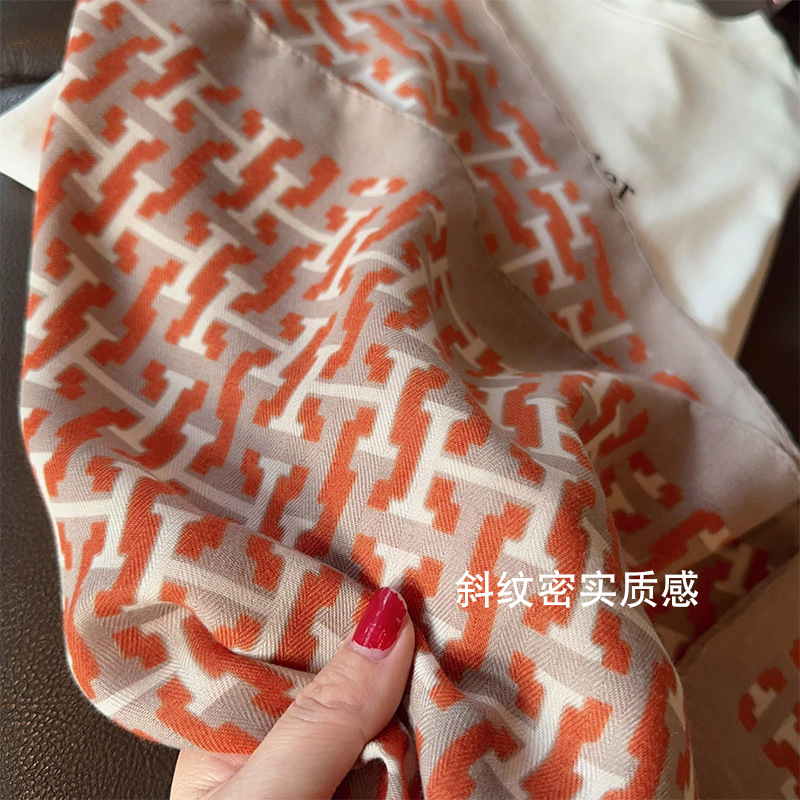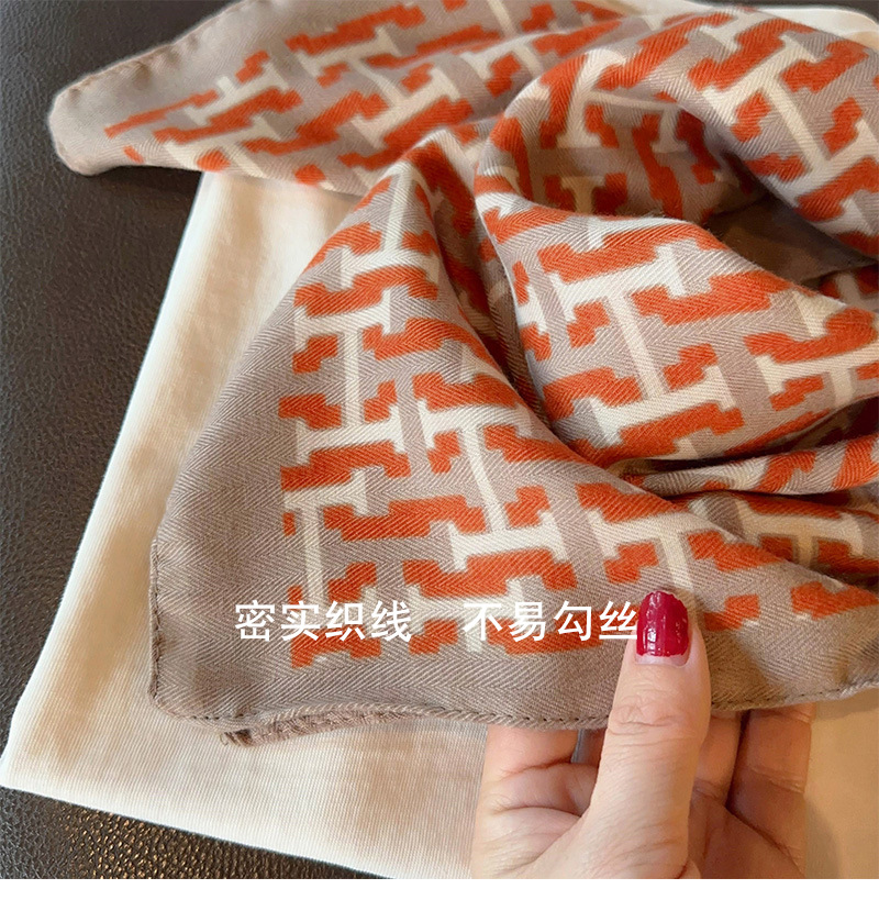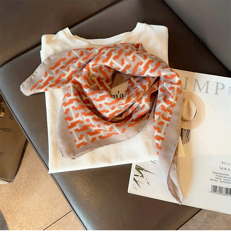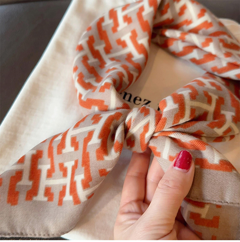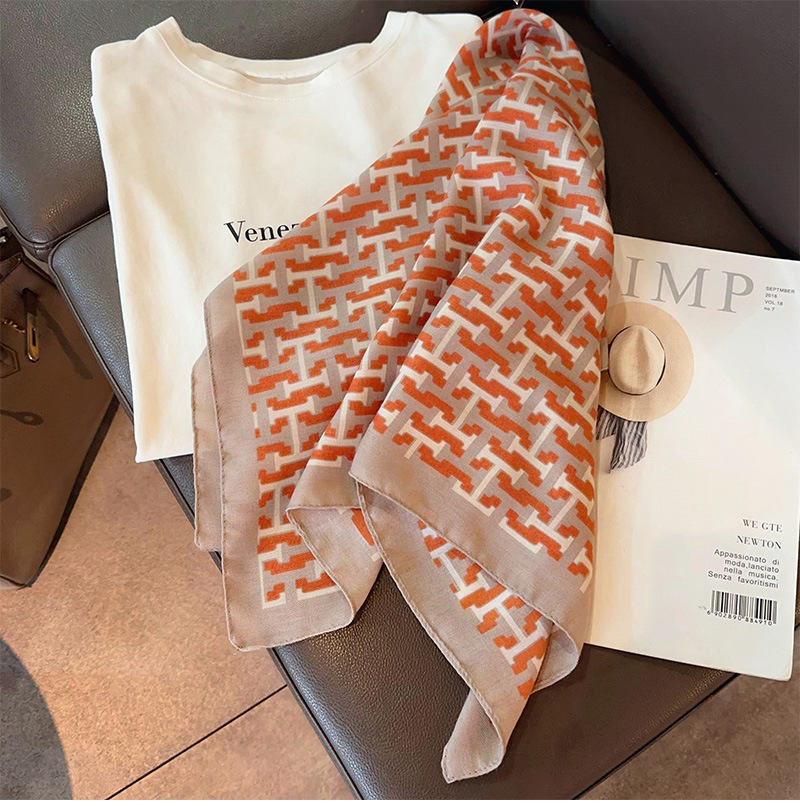 여성을위한 면과 린넨 작은 사각형 스카프 봄 새로운 H 문자 오렌지 실크 스카프와 셔츠 기질 한국 스타일 작은 스카프 머리띠 얇은