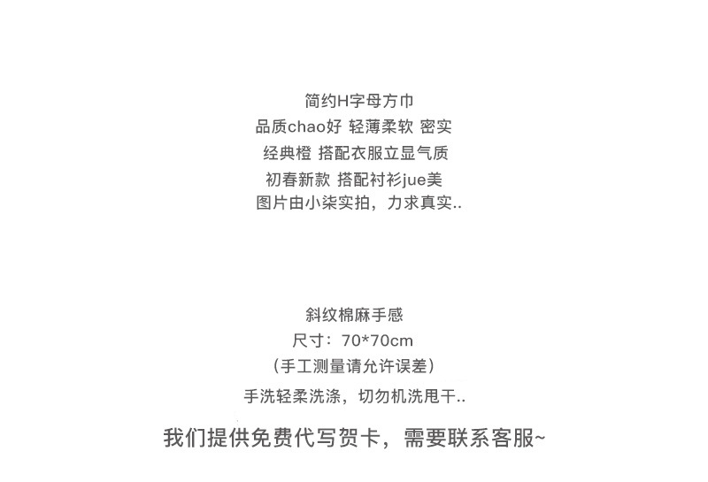 여성을위한 면과 린넨 작은 사각형 스카프 봄 새로운 H 문자 오렌지 실크 스카프와 셔츠 기질 한국 스타일 작은 스카프 머리띠 얇은스토어 가기