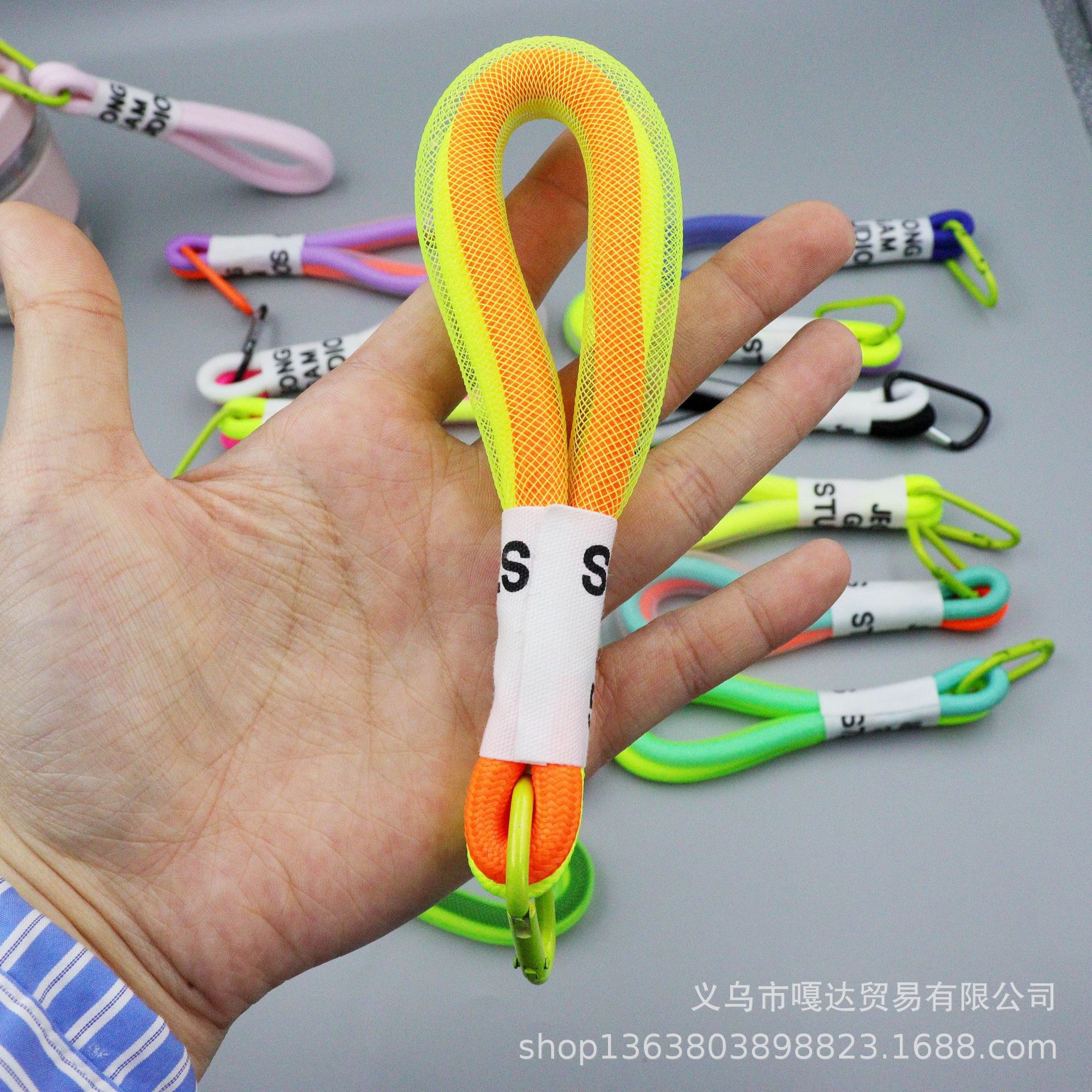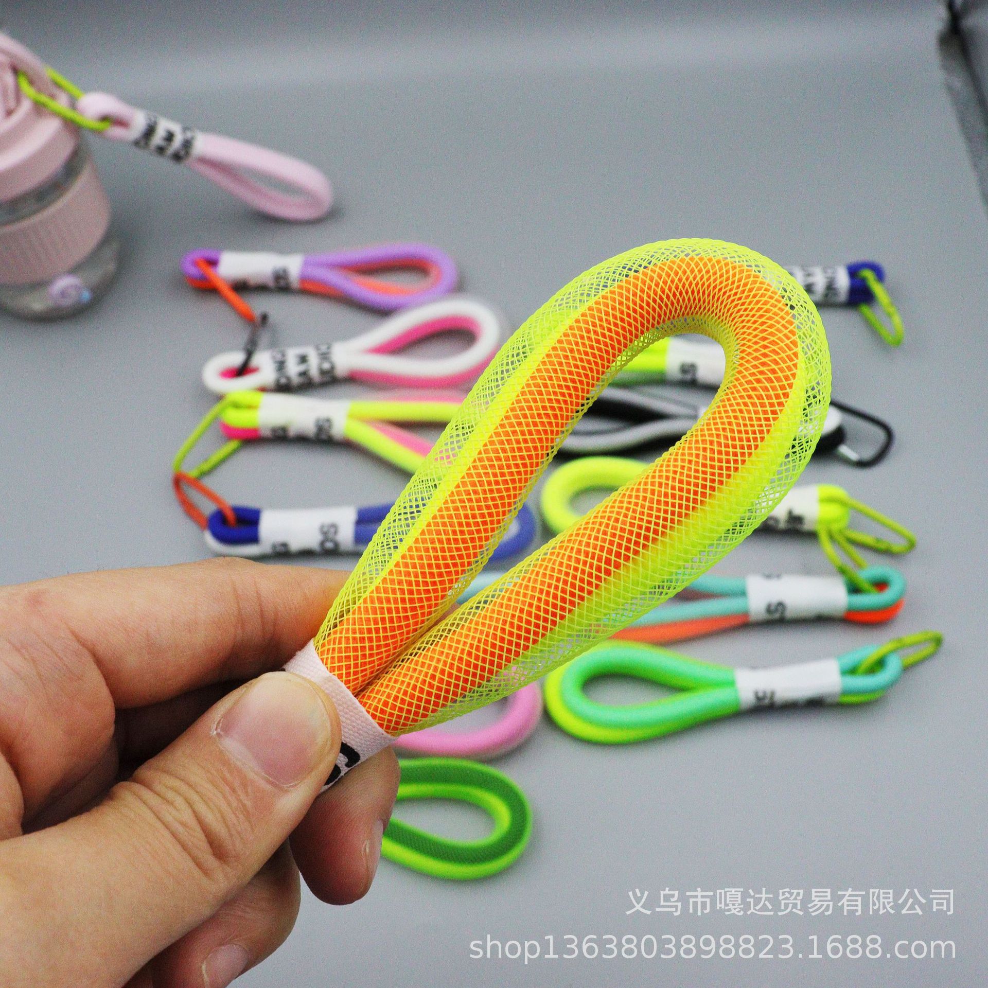 새로운 2 색 메쉬 로프 펜던트 컵 가방 땋은 끈 귀여운 캔디 컬러 끈 열쇠 고리 도매스토어 가기