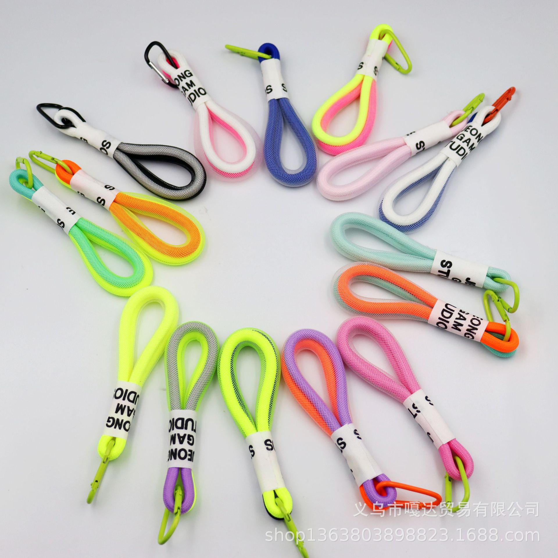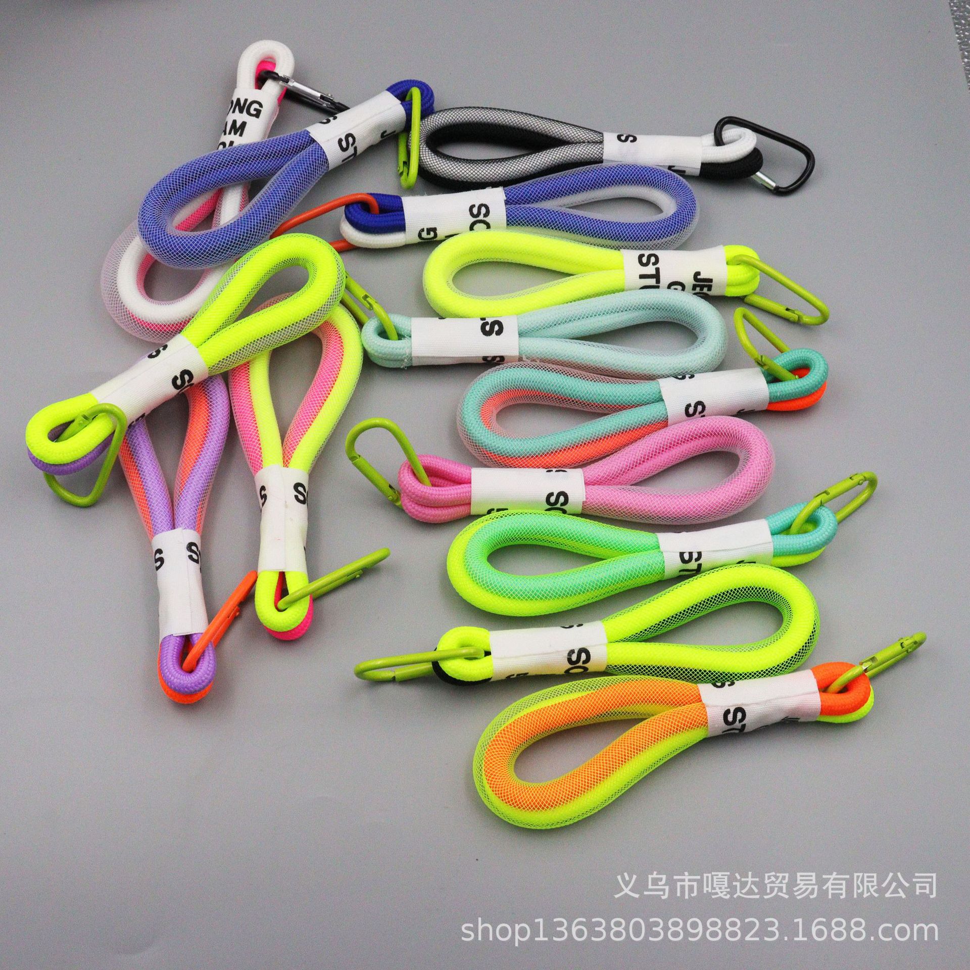 새로운 2 색 메쉬 로프 펜던트 컵 가방 땋은 끈 귀여운 캔디 컬러 끈 열쇠 고리 도매