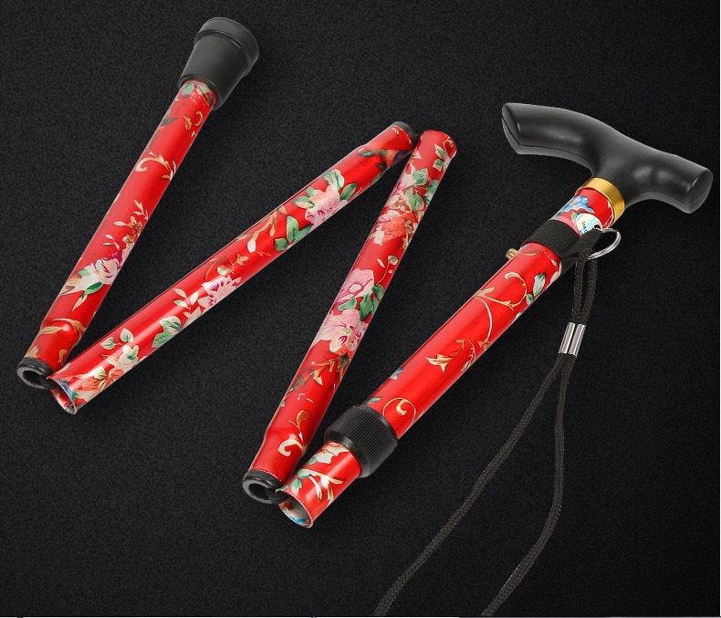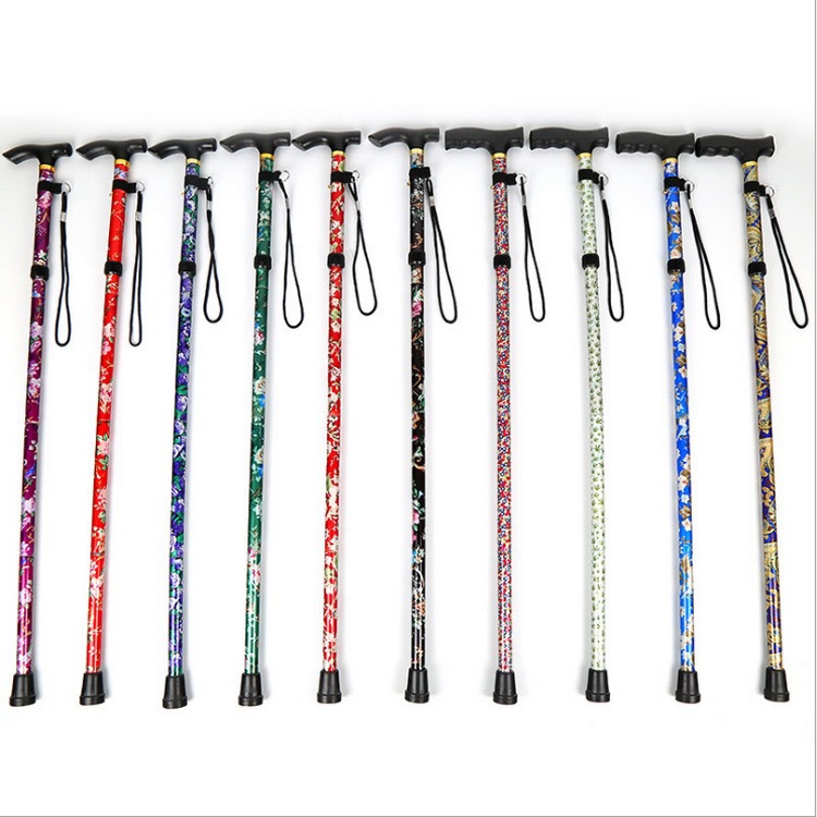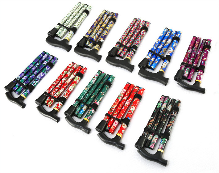 등산 직원 알루미늄 합금 인쇄 워킹 스틱 접이식 텔레스코픽 노인 워킹 스틱 비 슬립 라이트 워킹 스틱 공장 직접 도매스토어 가기