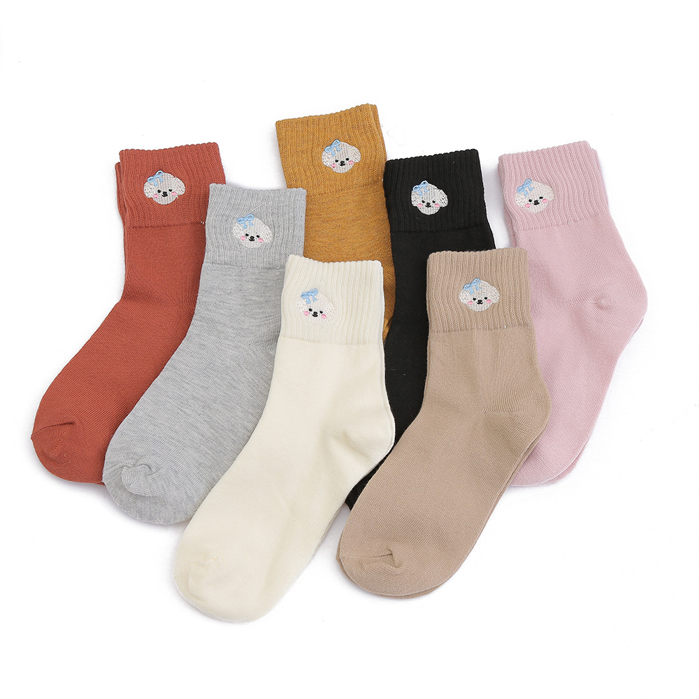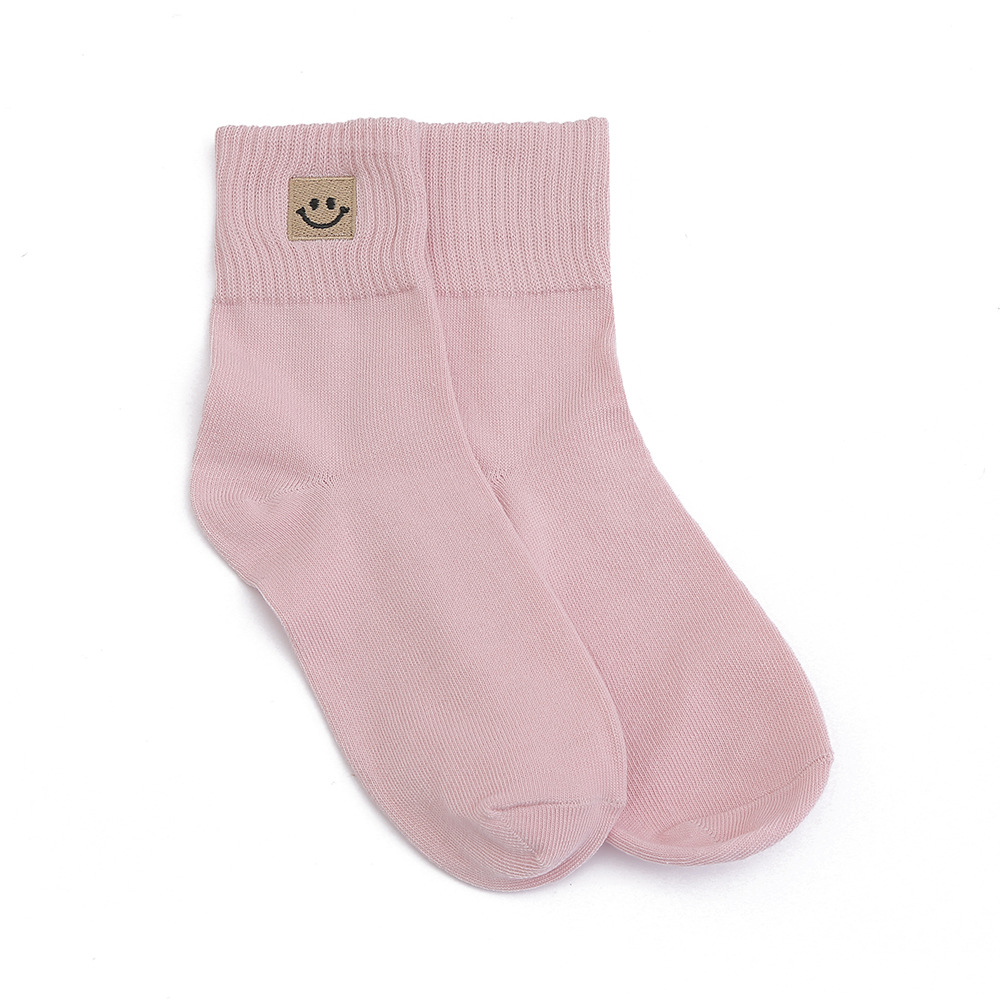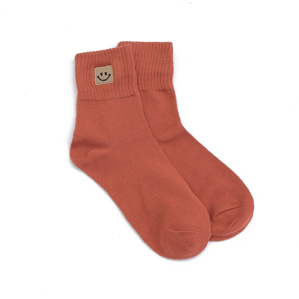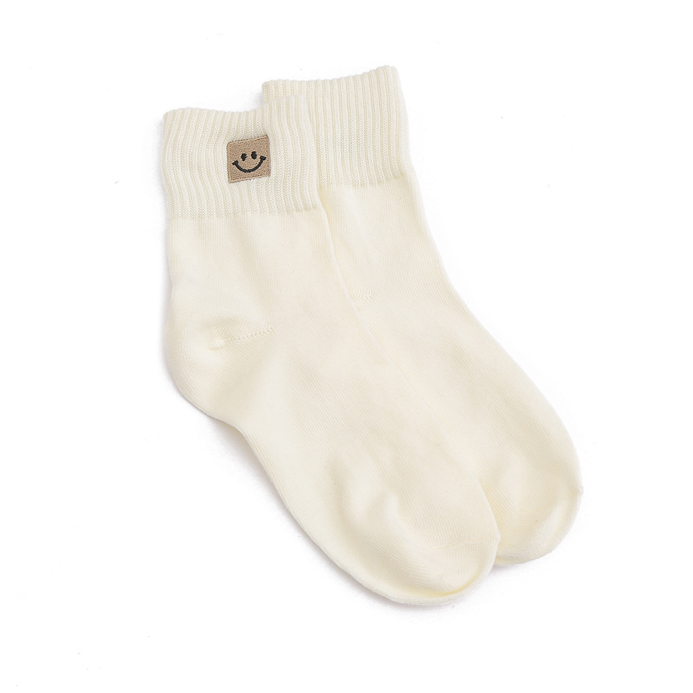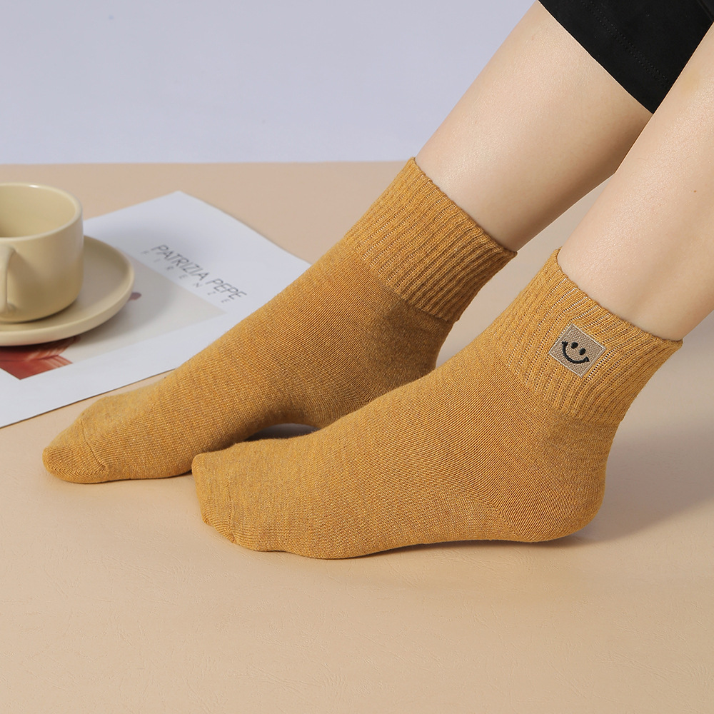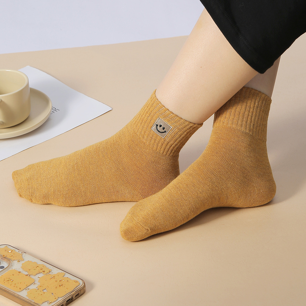 봄과 가을 여성 미드 튜브 양말 일본 트렌디 땀 흡수 솔리드 컬러 캐주얼 만화 자수 면 양말 스마일리 자수 여성용 양말