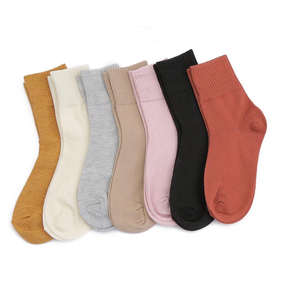 봄과 가을 여성 미드 튜브 양말 일본 트렌디 땀 흡수 솔리드 컬러 캐주얼 만화 자수 면 양말 스마일리 자수 여성용 양말스토어 가기
