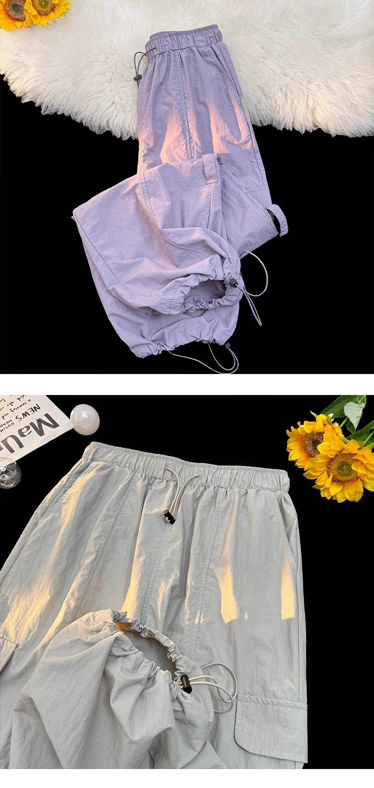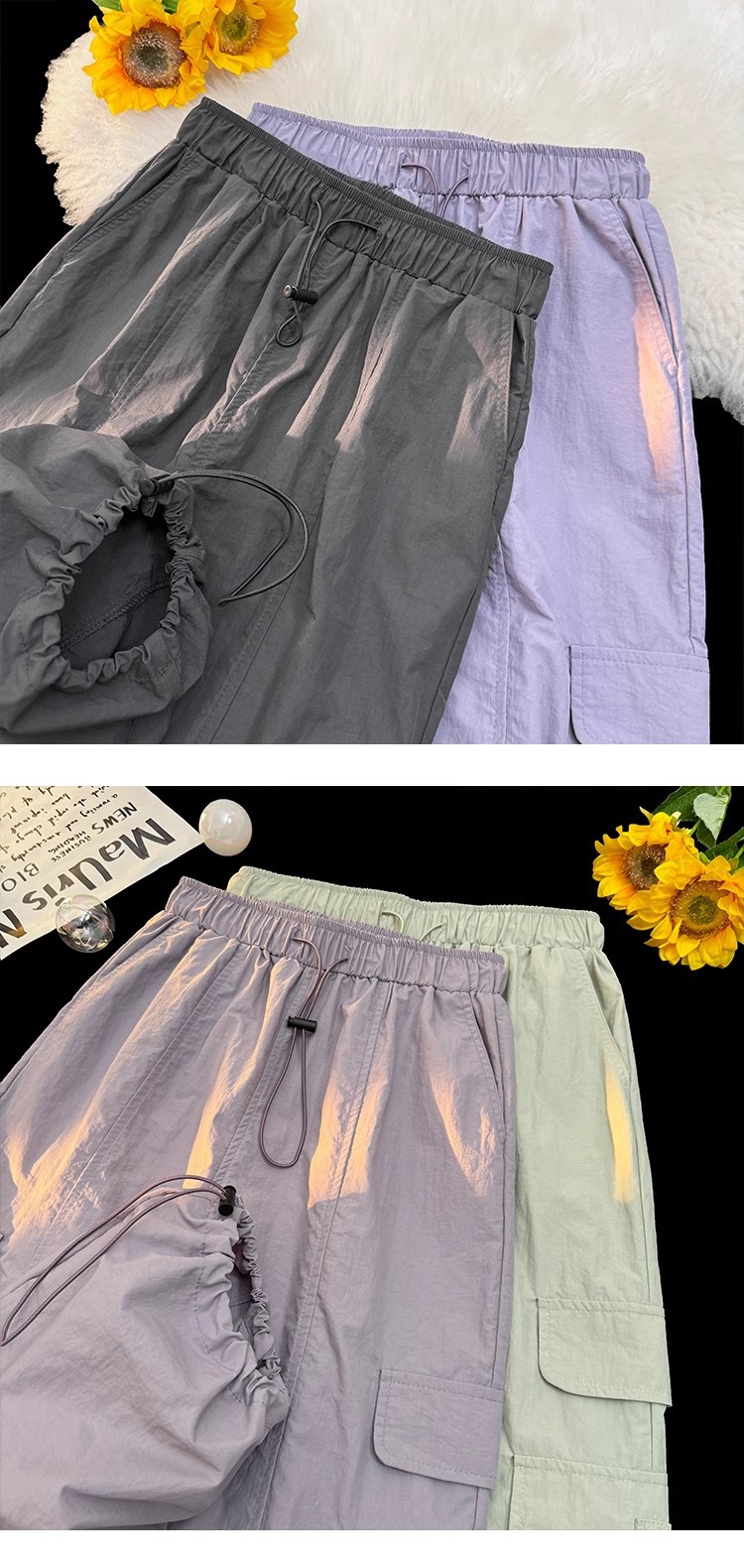 [오리지널 스타일 + 준비 재고] 여성용 하이킹 카고 팬츠, 여름용 얇은 팬츠, 작은 사이즈를 위한 속건성 스포츠 팬츠스토어 가기