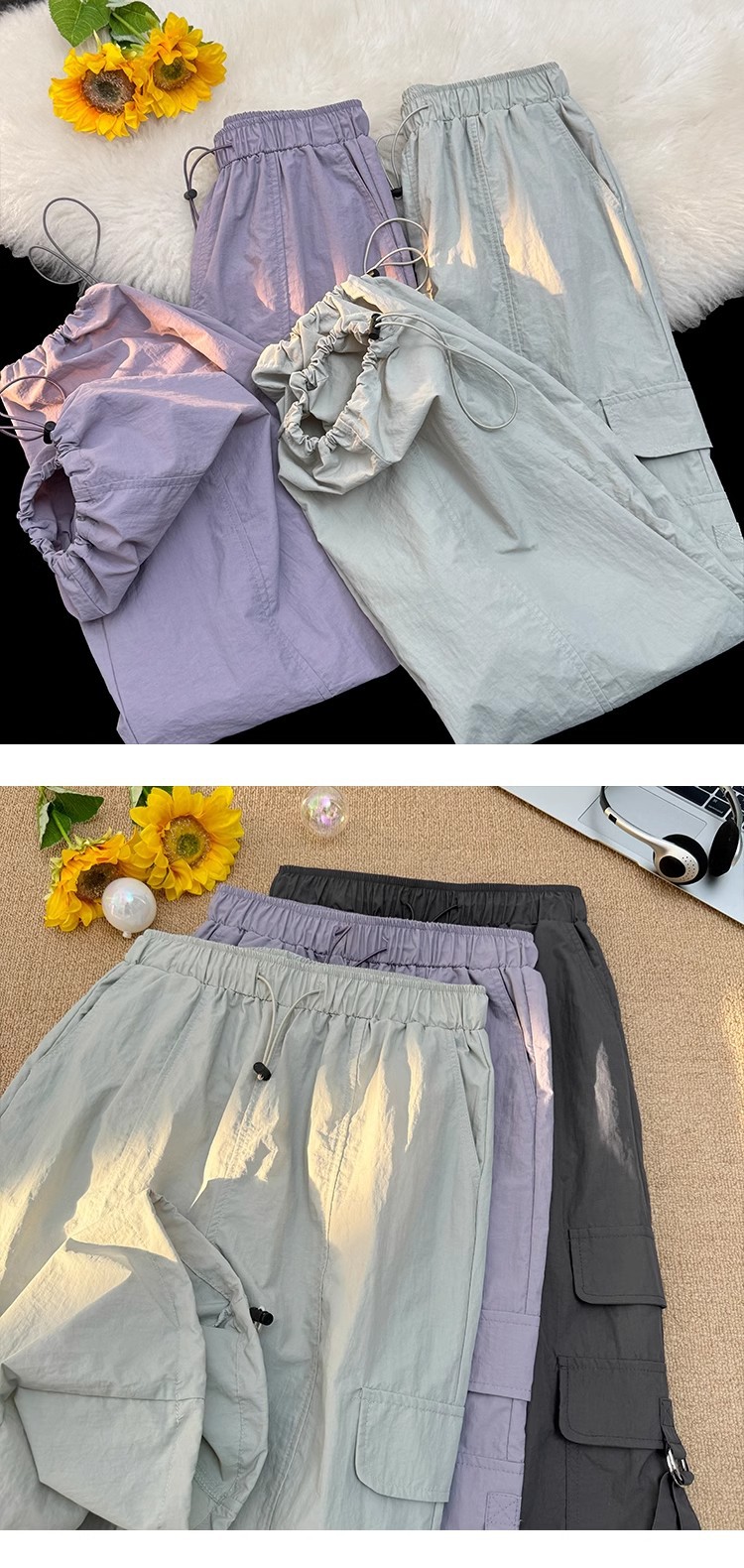 [오리지널 스타일 + 준비 재고] 여성용 하이킹 카고 팬츠, 여름용 얇은 팬츠, 작은 사이즈를 위한 속건성 스포츠 팬츠