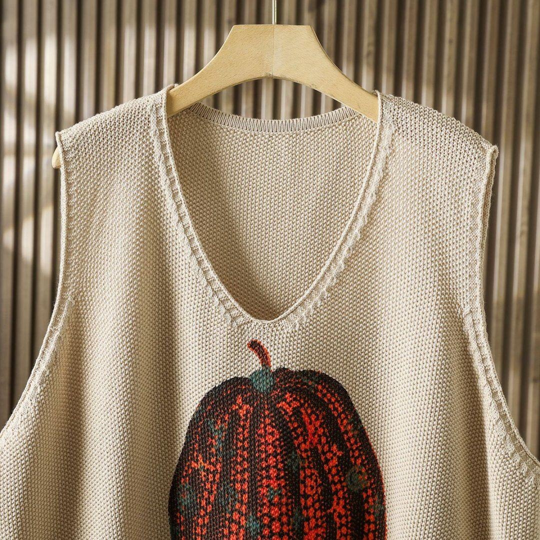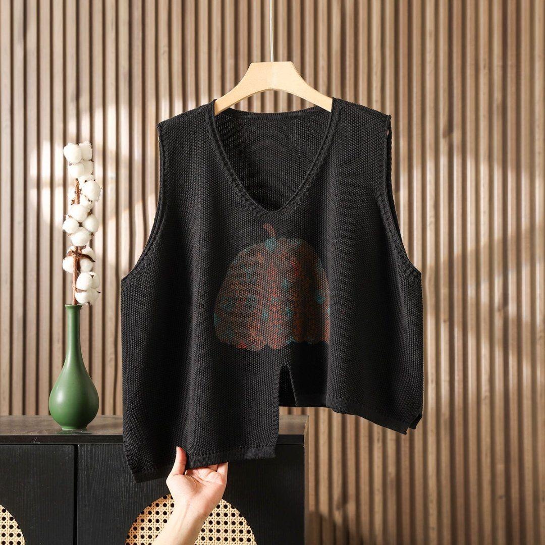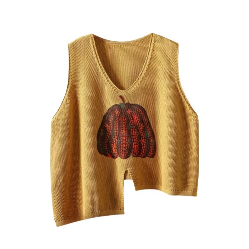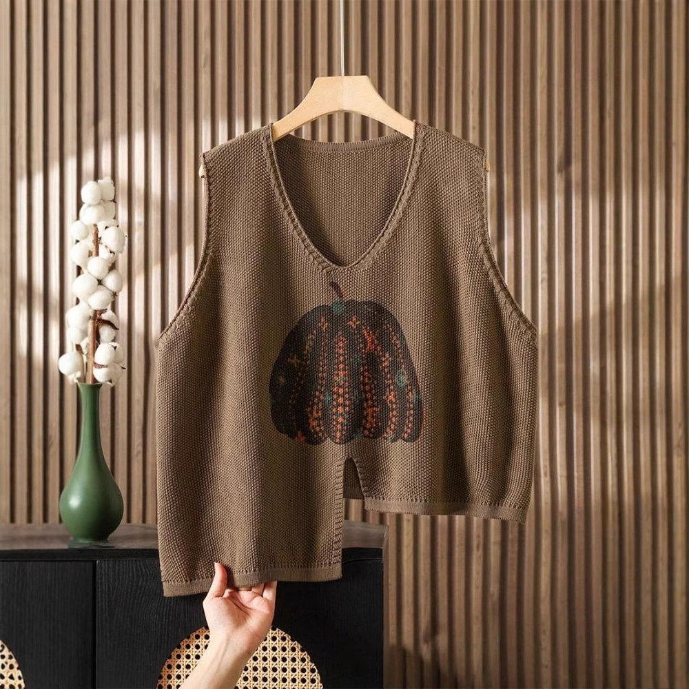 时髦春秋印花针织衫棉马甲短款女宽松无袖背心毛衣坎肩不规则马夹