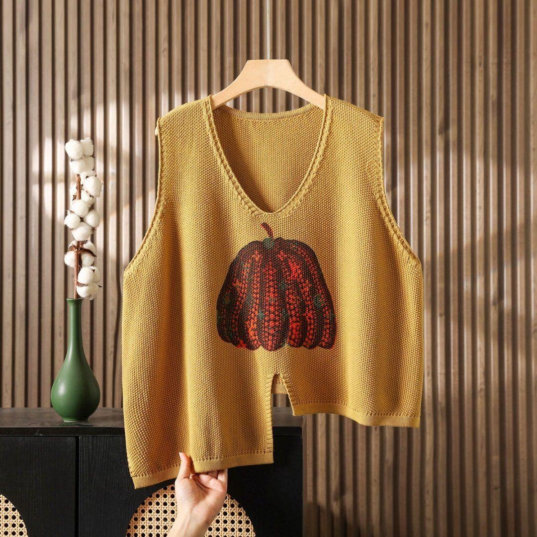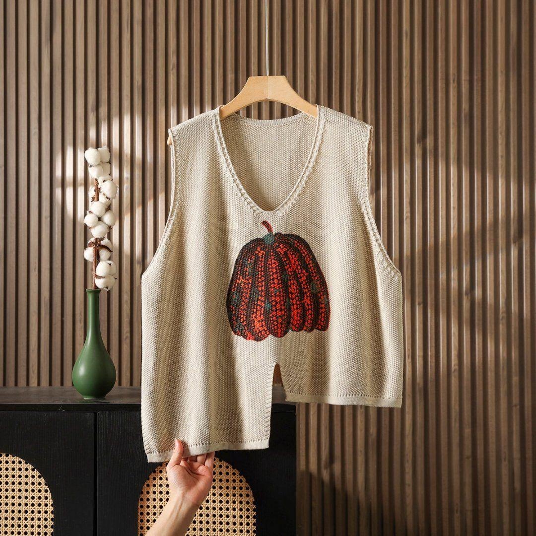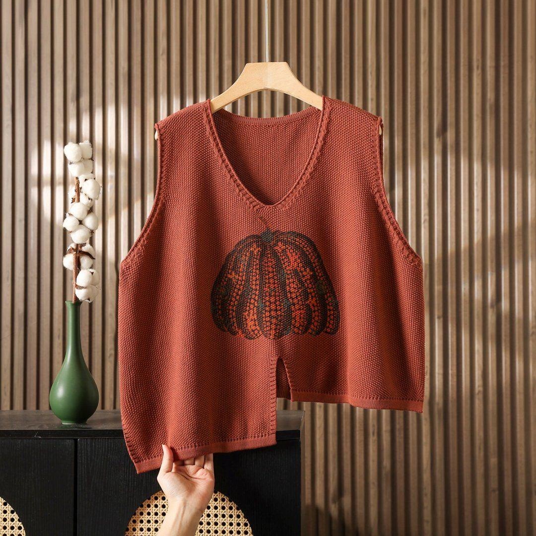 时髦春秋印花针织衫棉马甲短款女宽松无袖背心毛衣坎肩不规则马夹