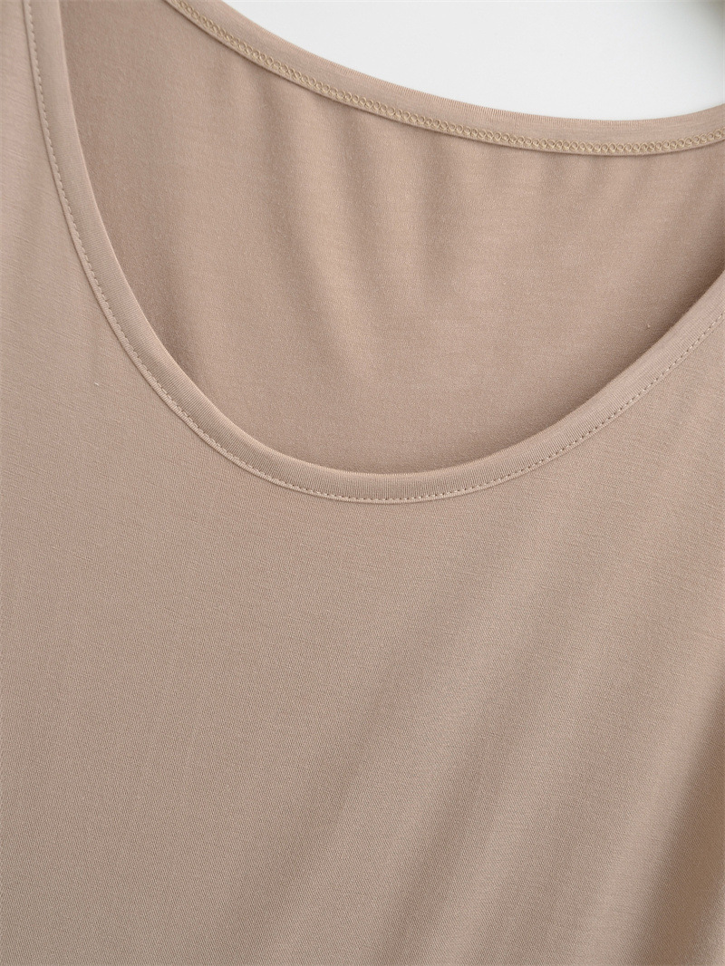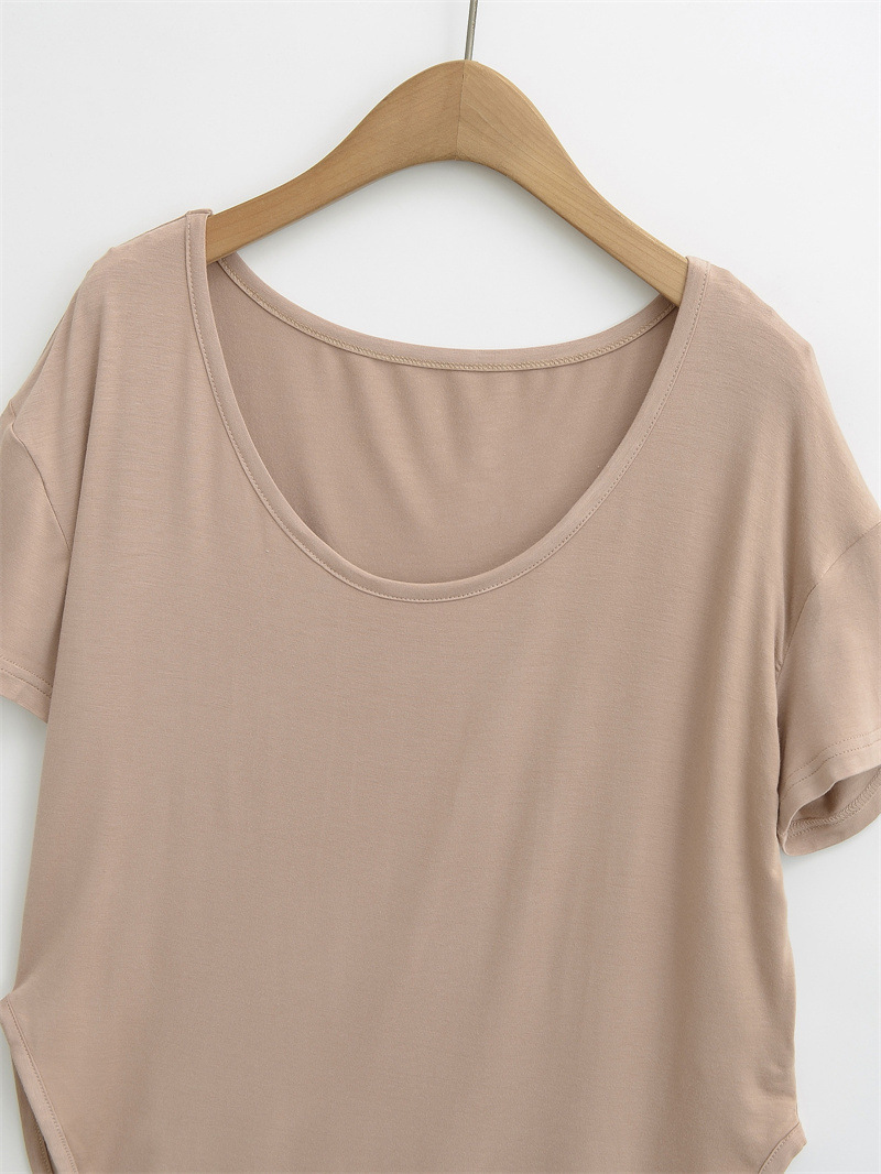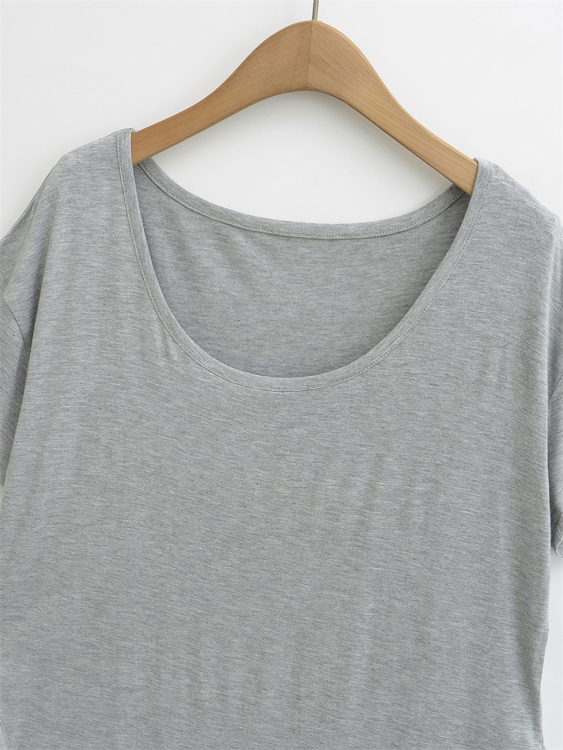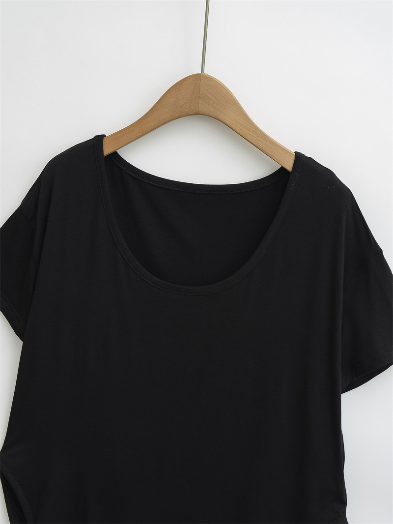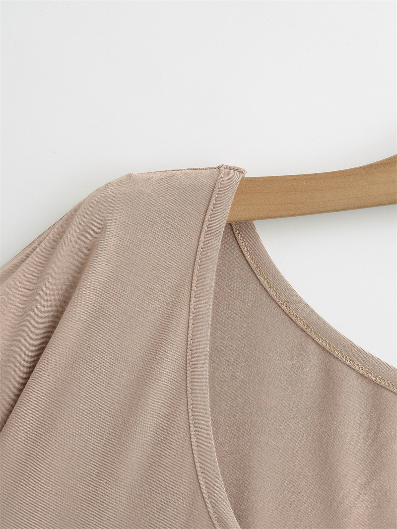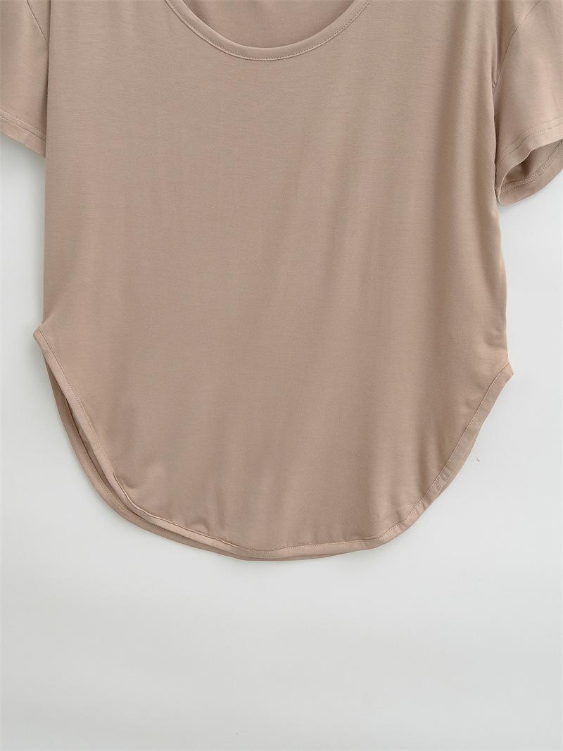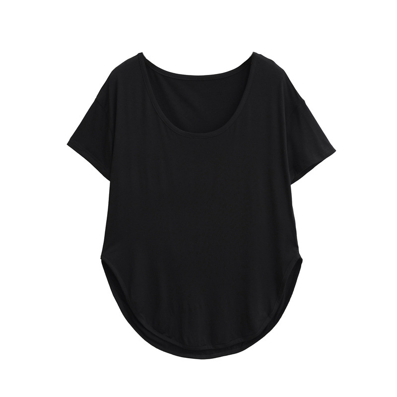 Hot Girl 빅 U 넥 반팔 탑 여성 2025 여름 새로운 느슨한 곡선 밑단 경량 모달 캐주얼 티셔츠