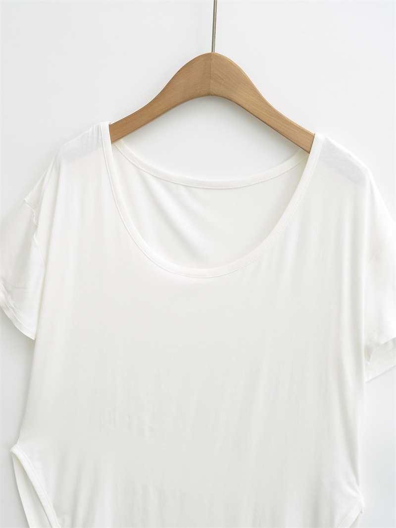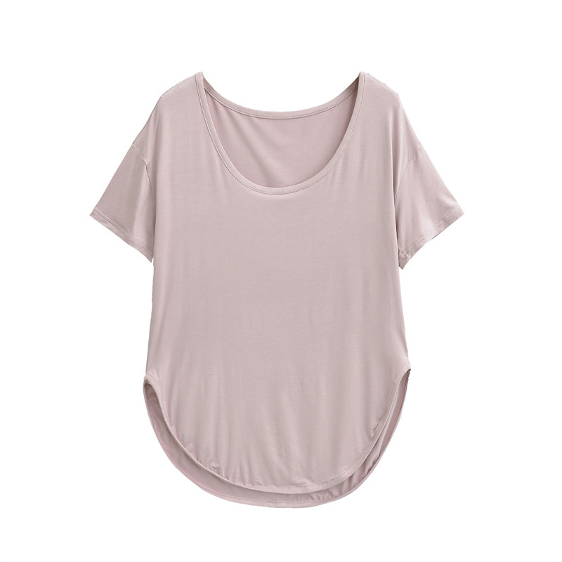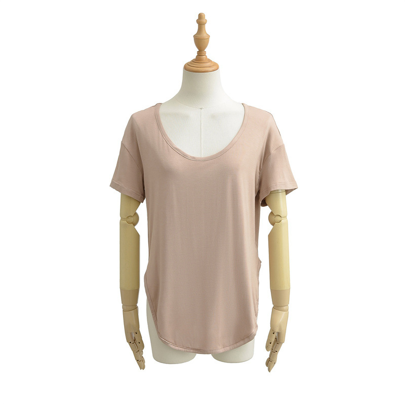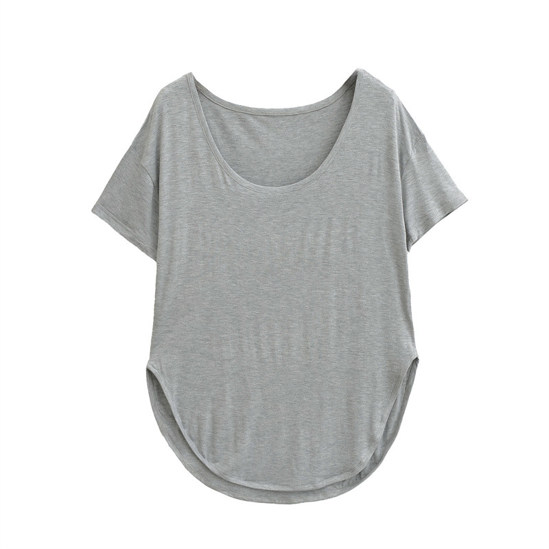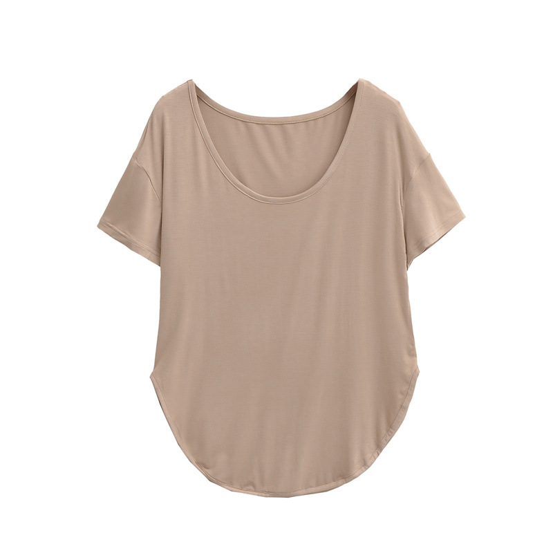 Hot Girl 빅 U 넥 반팔 탑 여성 2025 여름 새로운 느슨한 곡선 밑단 경량 모달 캐주얼 티셔츠스토어 가기
