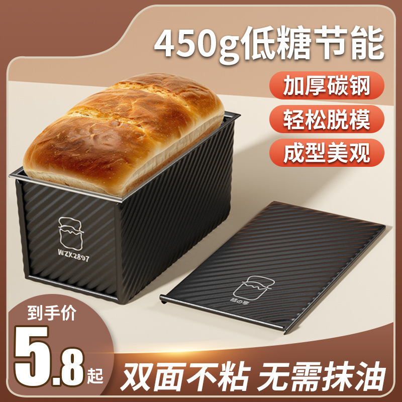 • 450g 토스트 틀(뚜껑 포함), 두꺼워짐/달라붙지 않음.