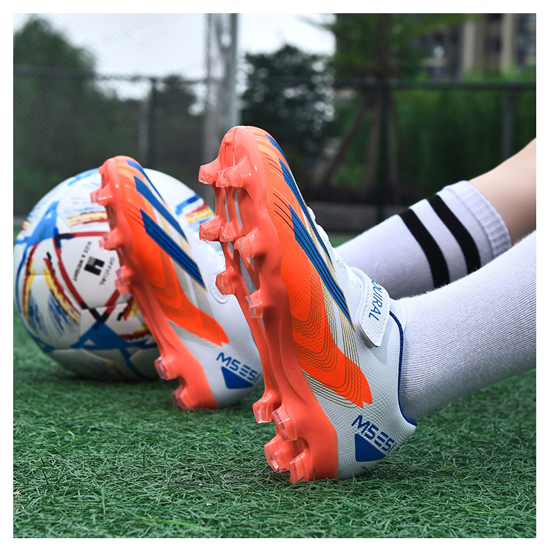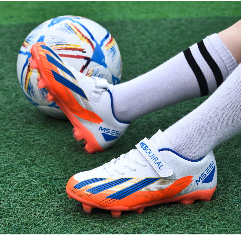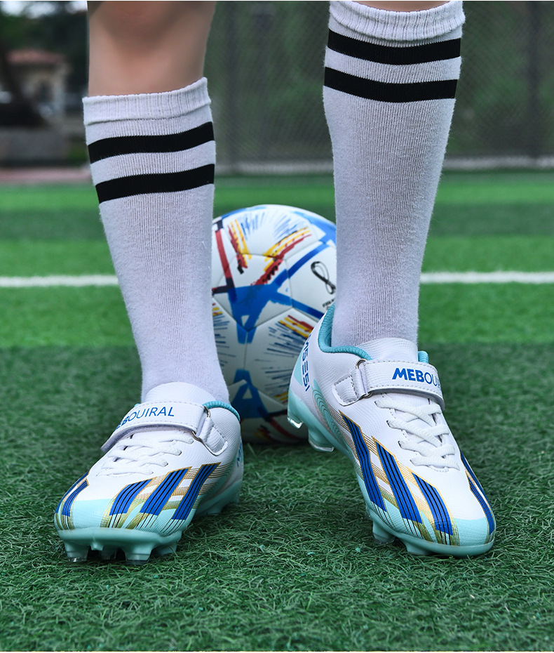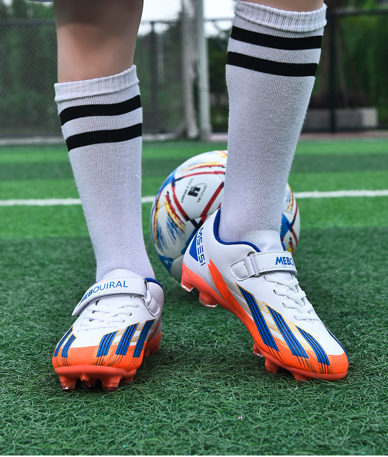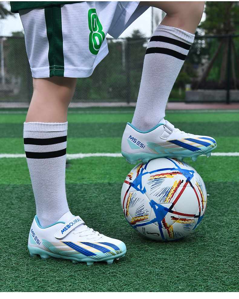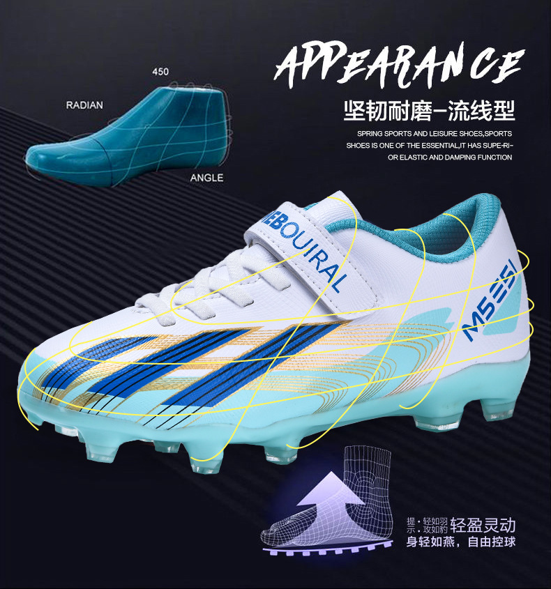 실내 및 실외 경기장 전문 경기용 초등학생 및 어린이를 위한 새로운 스타일의 로우탑 미끄럼 방지, 내마모성 및 경량 스포츠 축구화스토어 가기