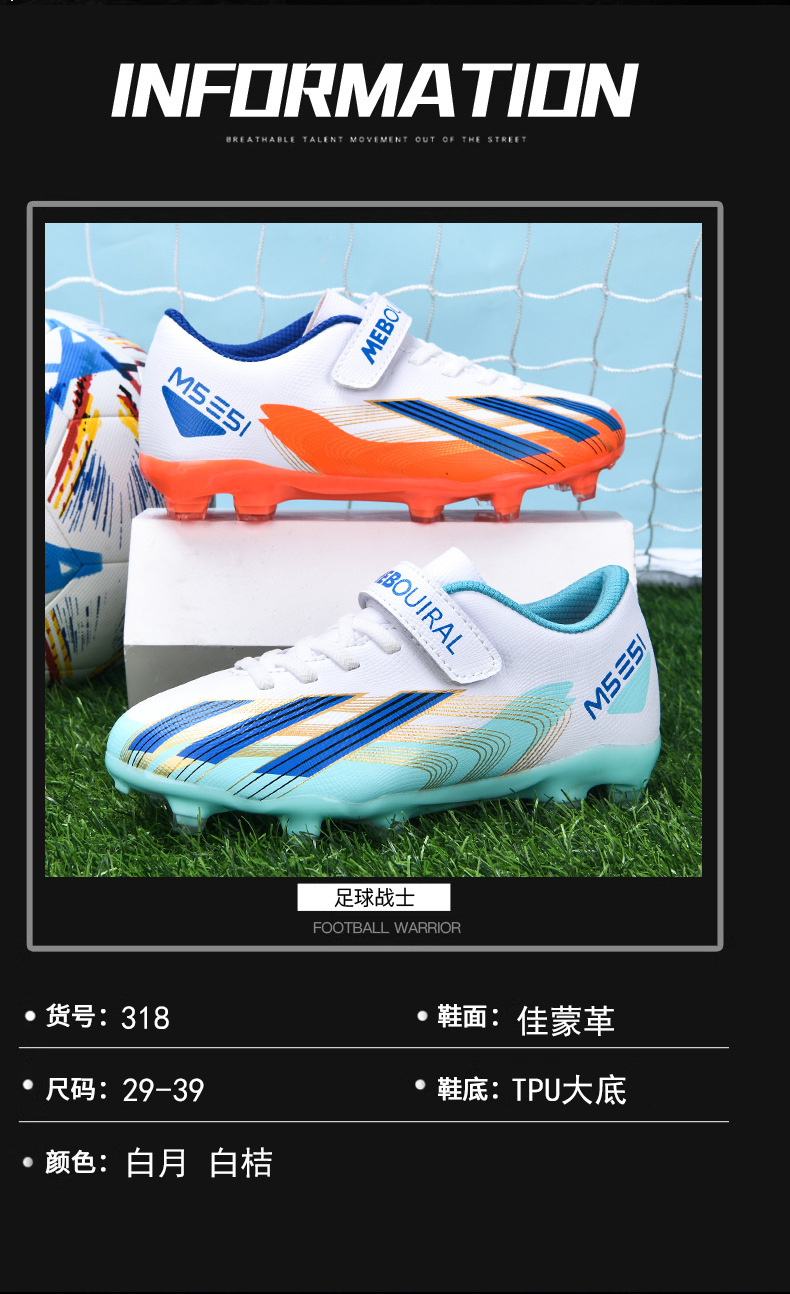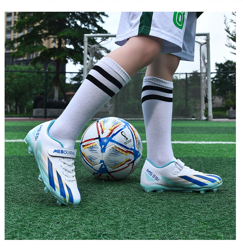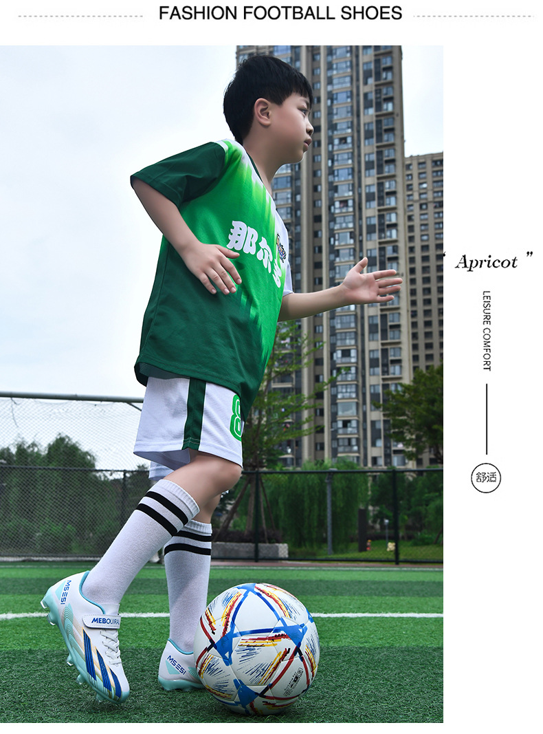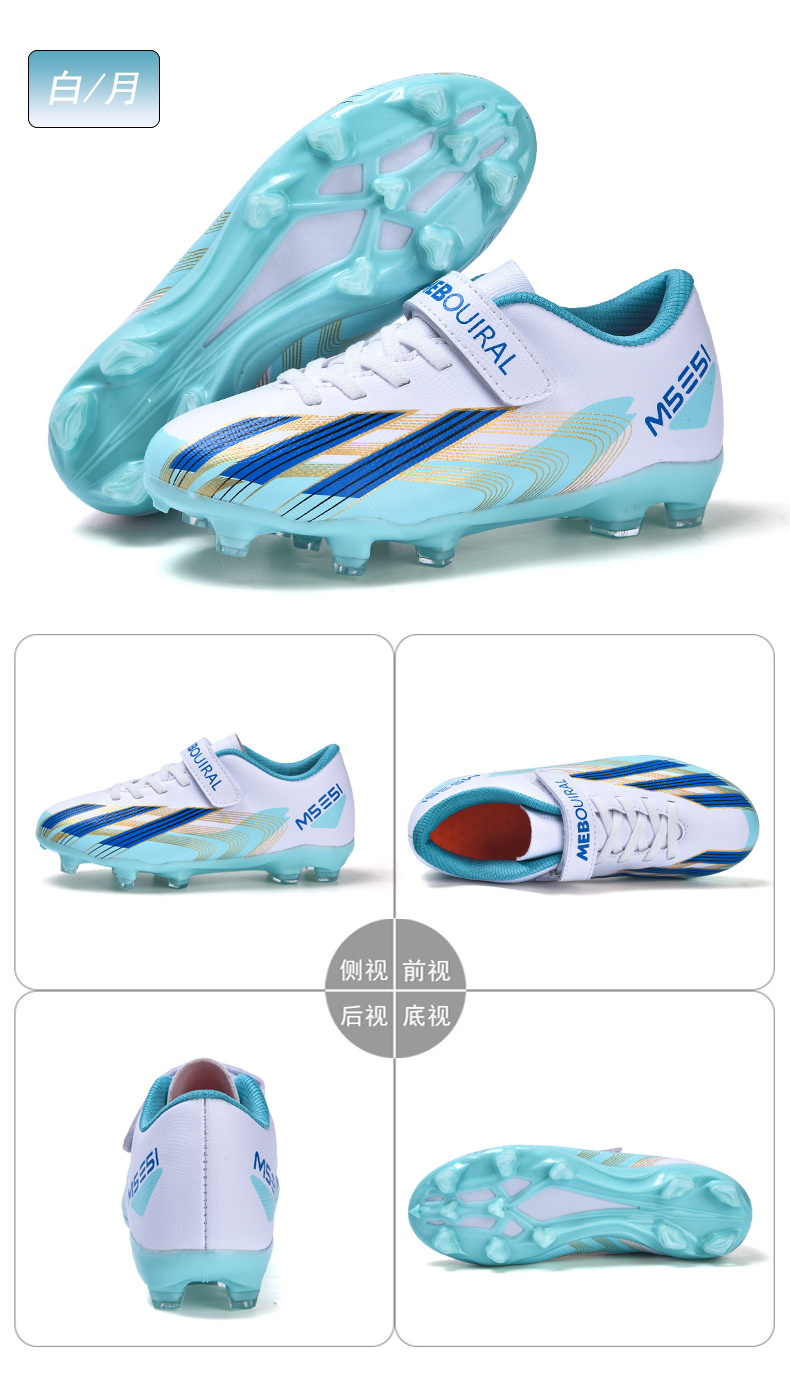 실내 및 실외 경기장 전문 경기용 초등학생 및 어린이를 위한 새로운 스타일의 로우탑 미끄럼 방지, 내마모성 및 경량 스포츠 축구화스토어 가기
