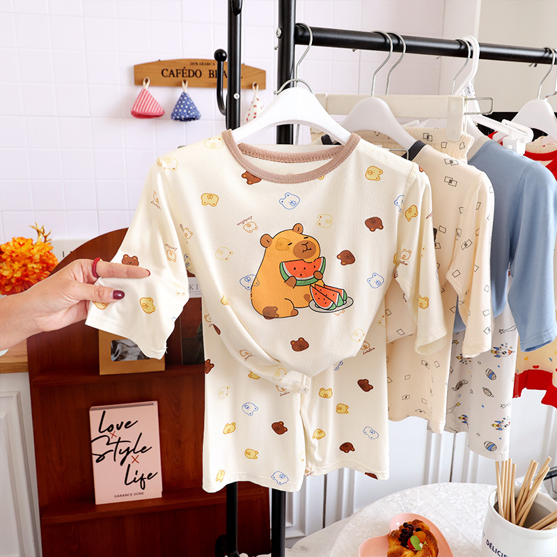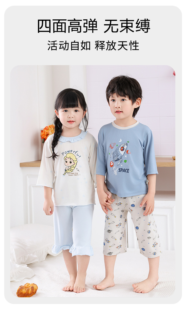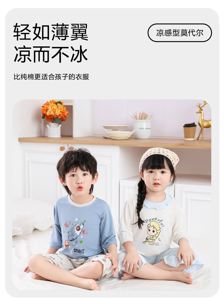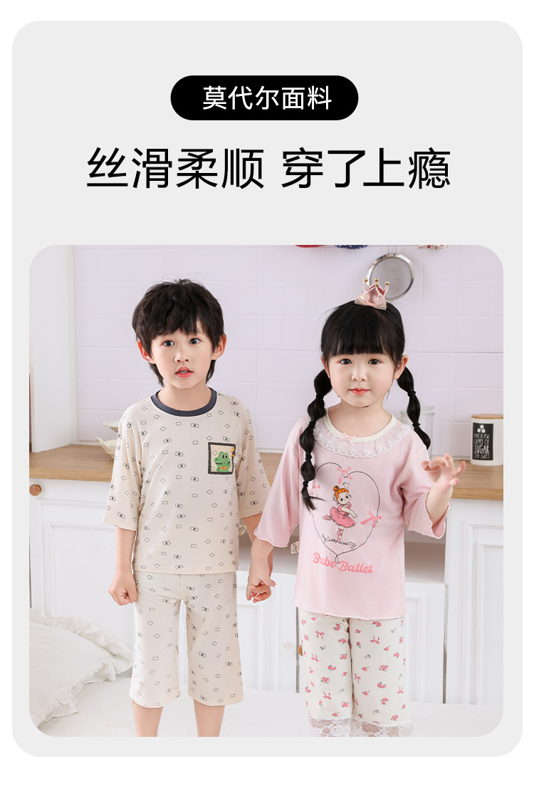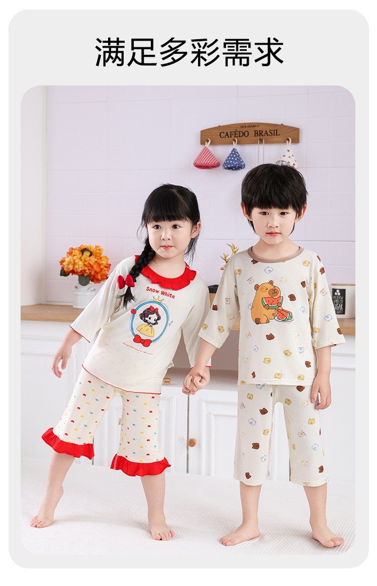 아동 의류 여름 모달 만화 에어컨 정장 소년과 소녀를위한 7/4 소매 가정 의류 통기성 공주 스타일 잠옷스토어 가기