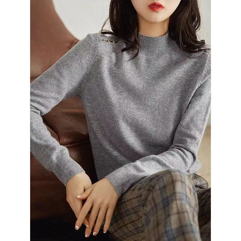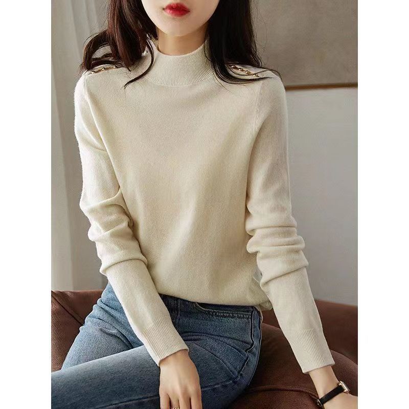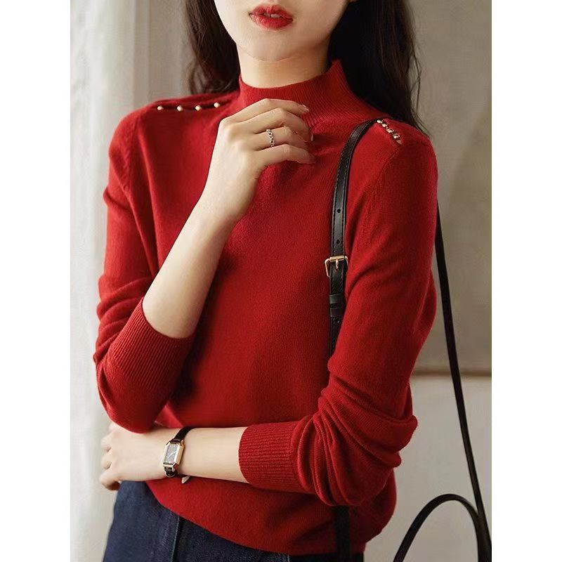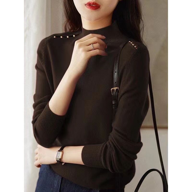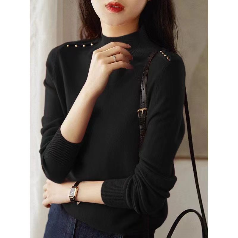 대외 무역 프랑스 유럽 상품 오리지널 싱글 럭셔리 퍼스트 라인 컷 라벨 하프 터틀넥 스웨터 구슬 루즈베이스 탑
