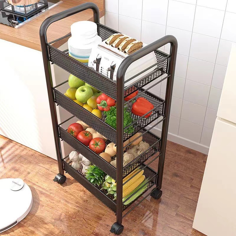 주방 보관 랙 바닥-작은 카트 다기능 야채 바구니 랙을위한 가정용 이동식 다층 저장 랙