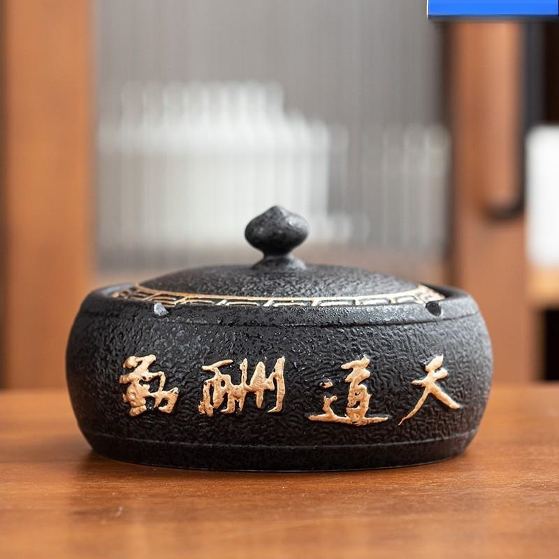 뚜껑이 있는 재떨이, 창의적인 홈 오피스, 맞춤형 트렌디한 거실, 중국식 비비산 방지 및 먼지 방지 세라믹 재떨이