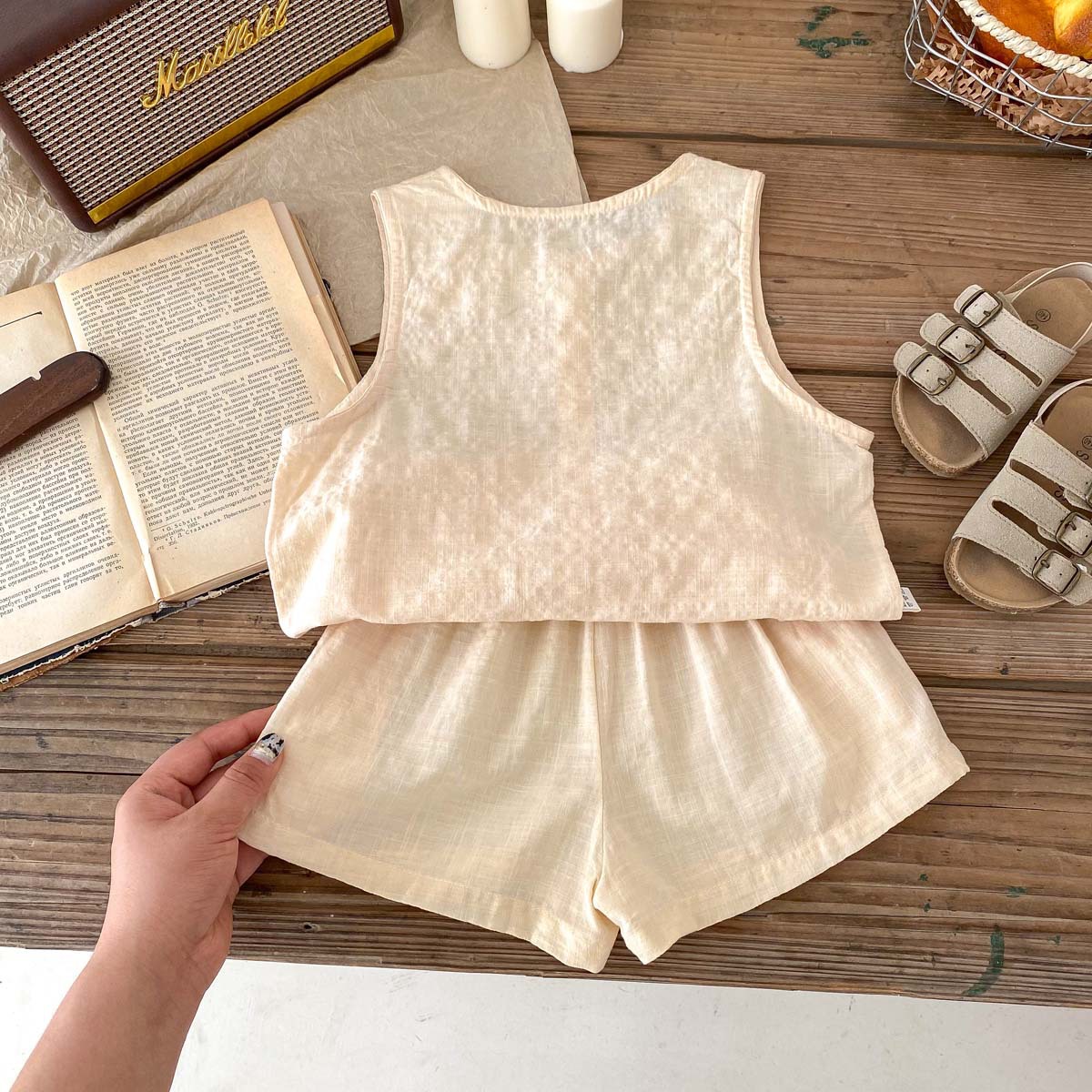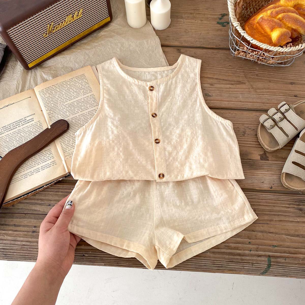 남아 및 여아용 아동용 여름 얇은 양복, 민소매 조끼, 캐주얼웨어, 아동복, 오픈 버튼 조끼, 외출용 투피스 세트