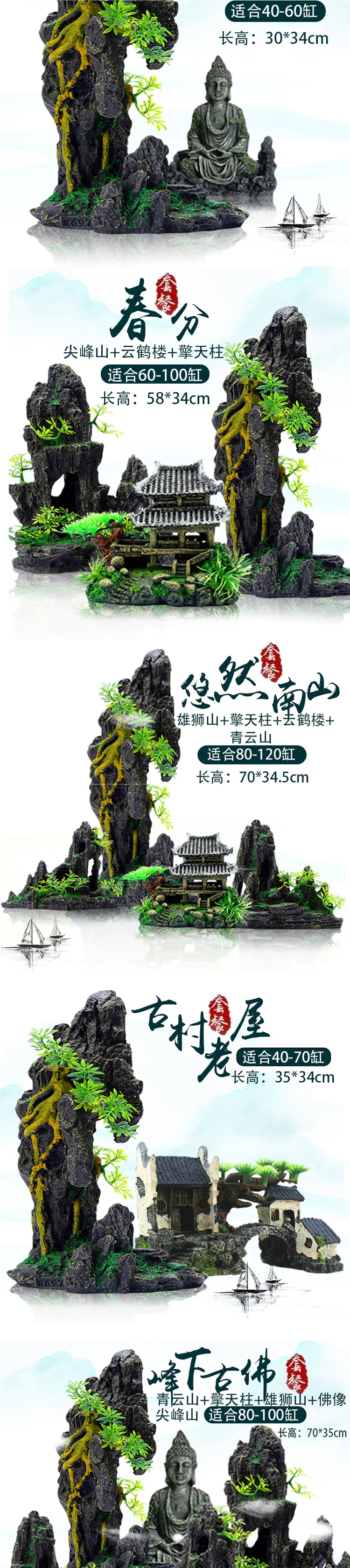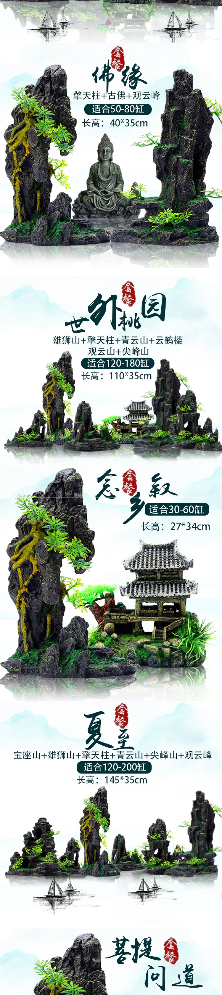 수조 조경 및 석가 패키지, 장식용 수생 식물, 돌 작은 장식품, 작은 수족관 장면, 잔디 수조 조경 및 석재 패키지스토어 가기