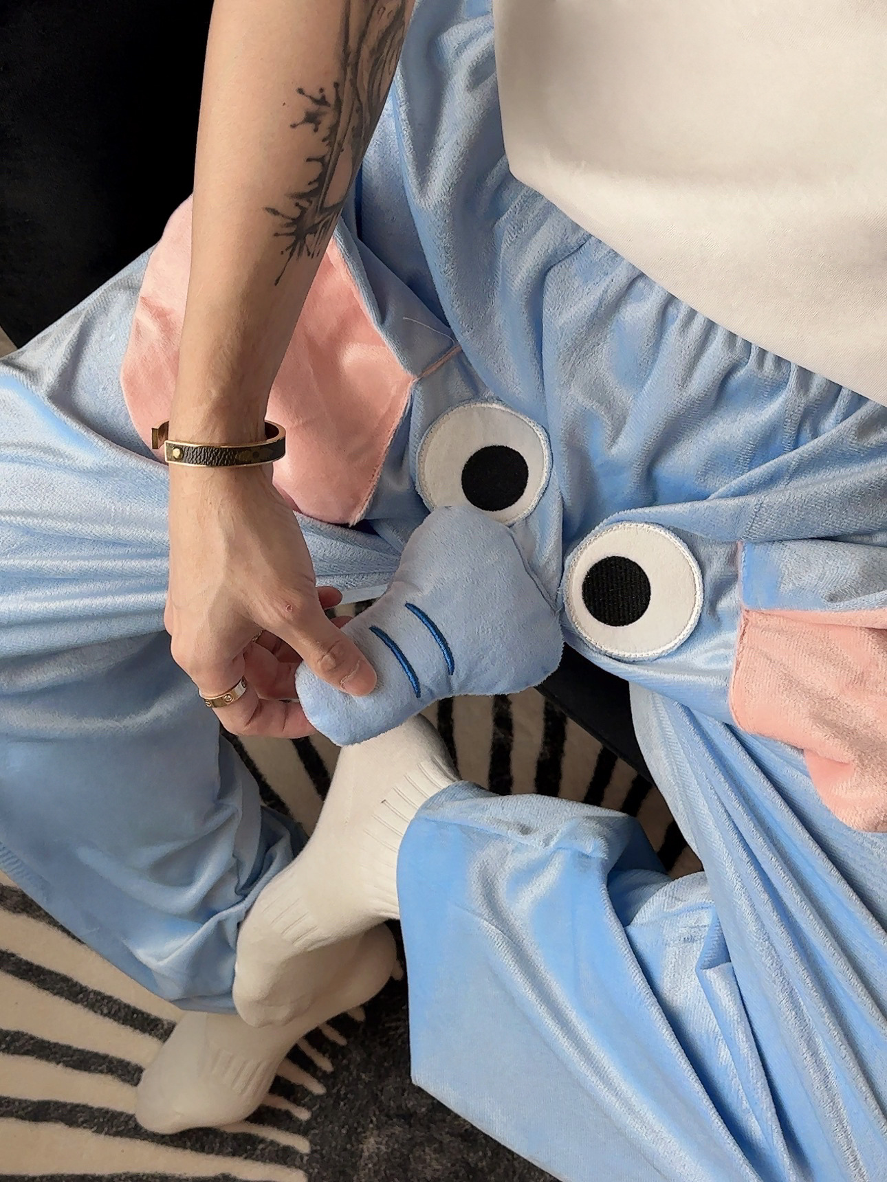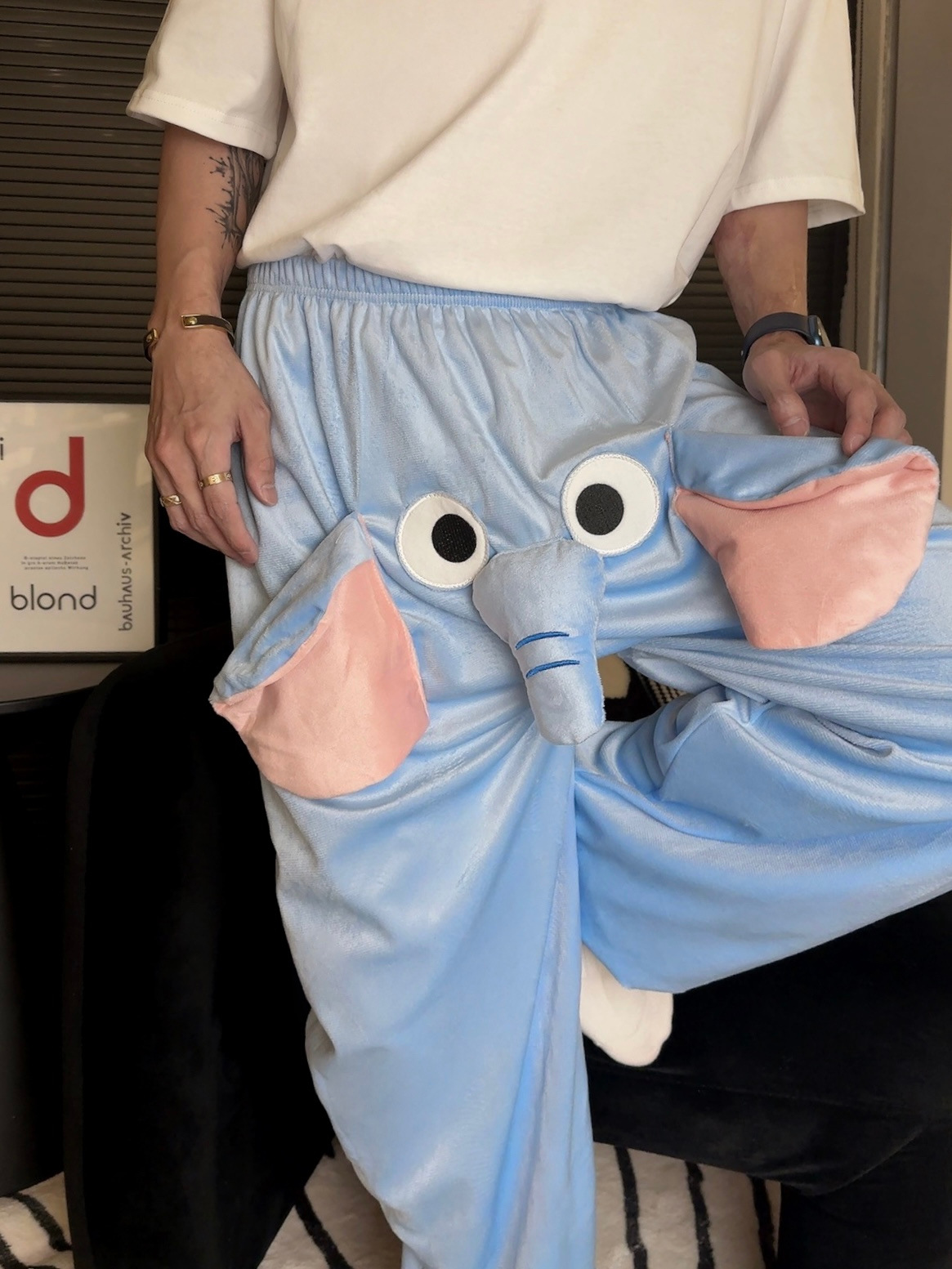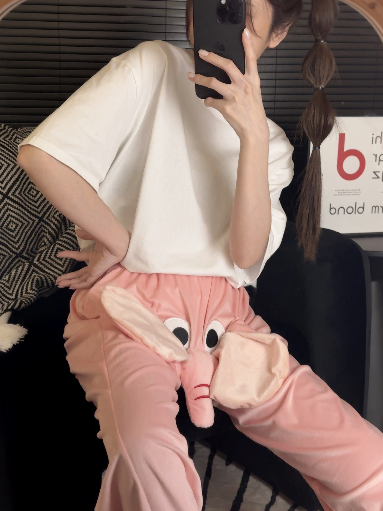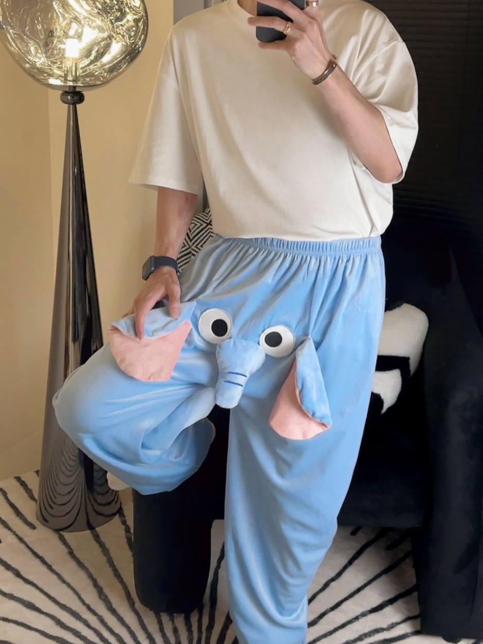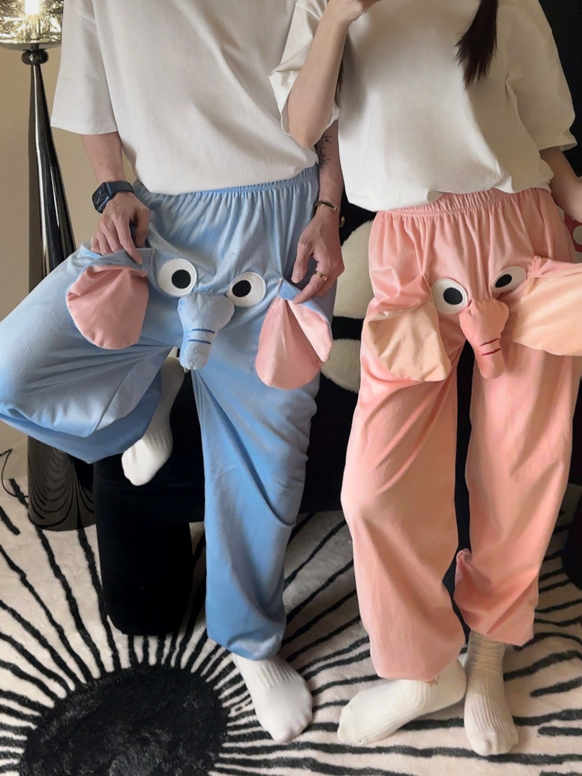 가을 겨울 커플 잠옷, 인터넷 연예인 스타일 코끼리 코 소리나는 남성용 싱글 팬츠, 재미있는 여성용 귀여운 따뜻한 바지, 배송스토어 가기