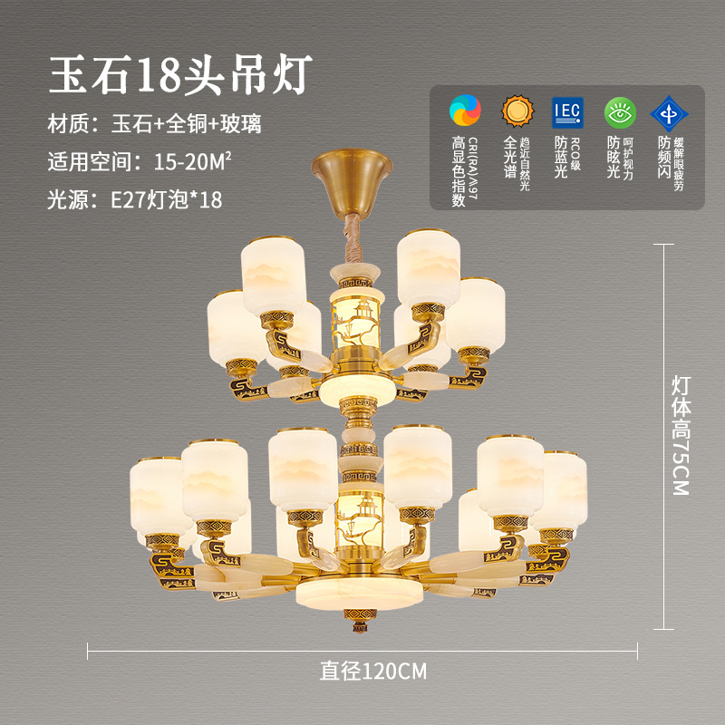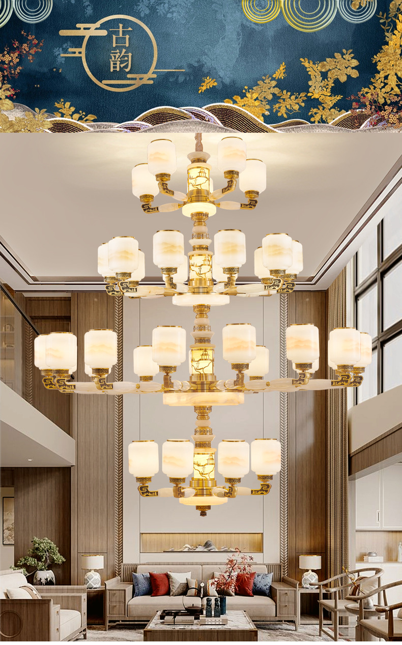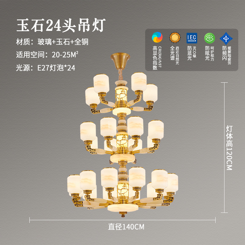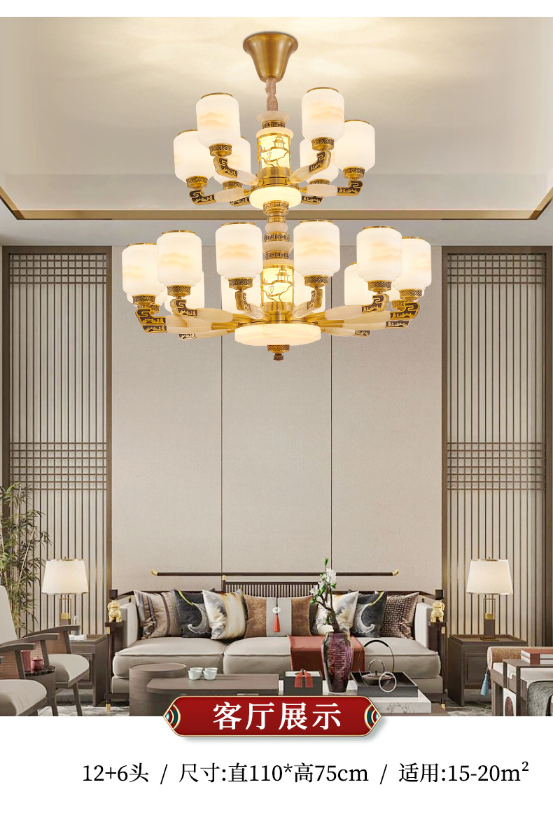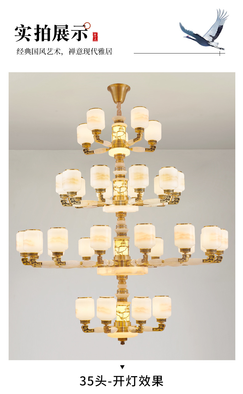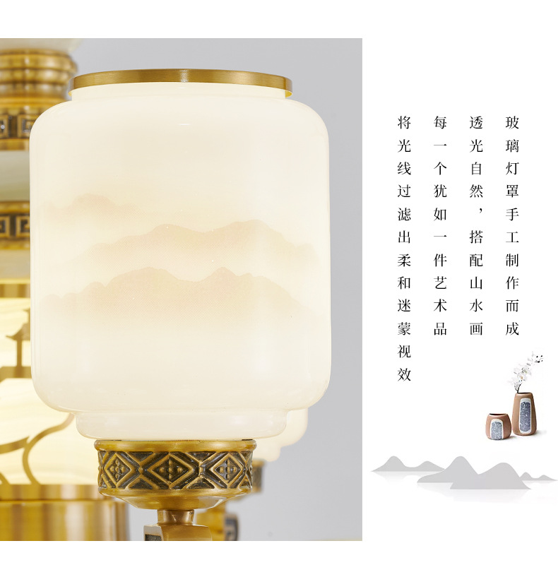 새로운 중국 스타일 모든 구리 거실 램프 현대 간단한 중국 스타일 호텔 홀 럭셔리 샹들리에 광동 중산 램프스토어 가기