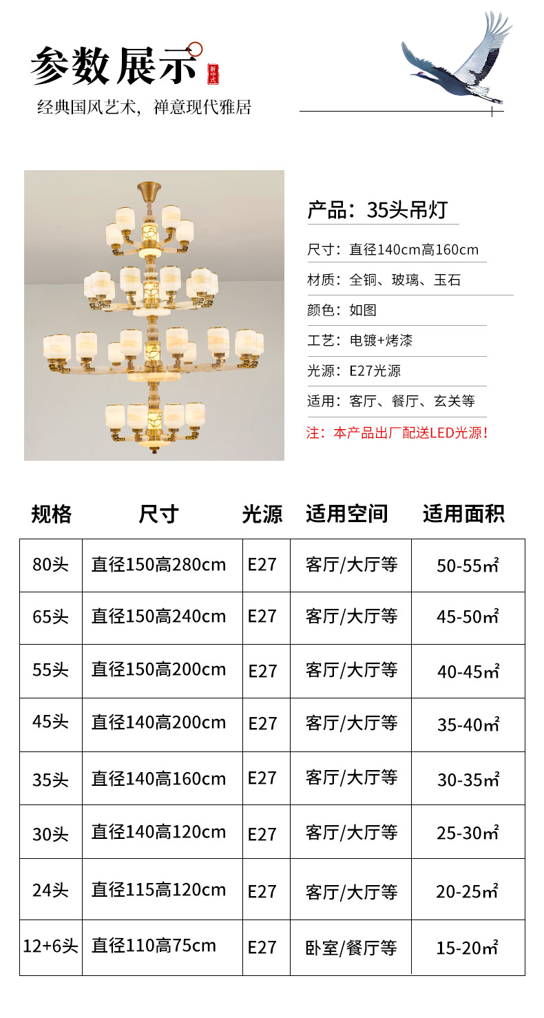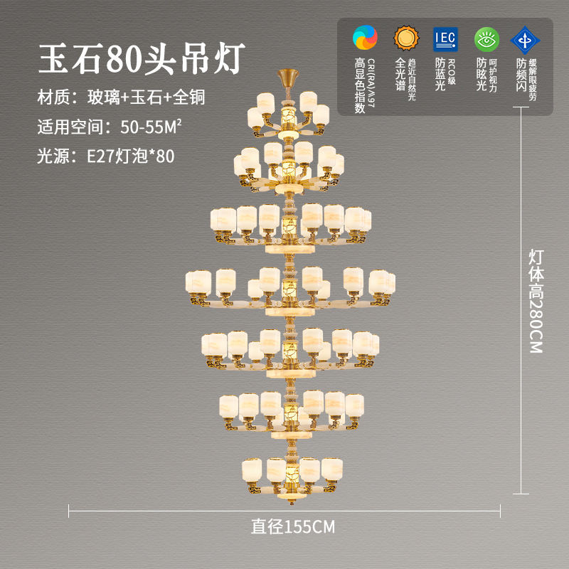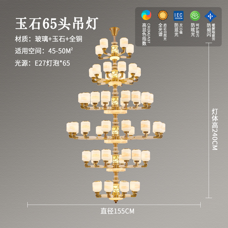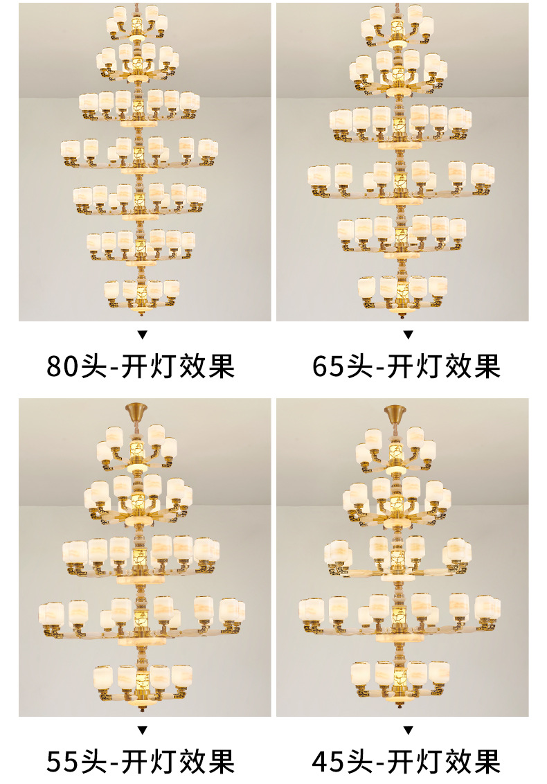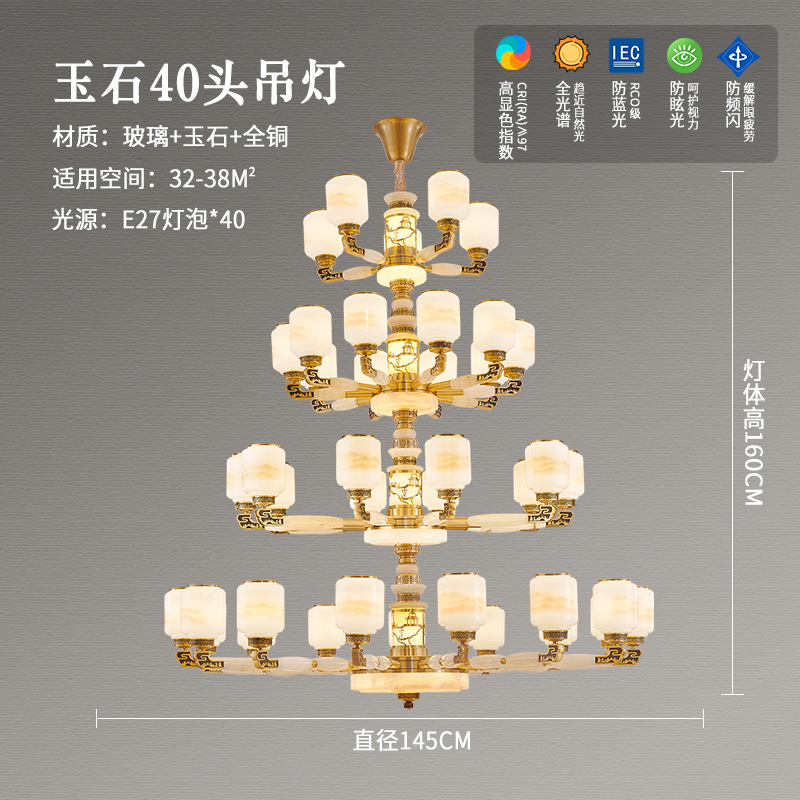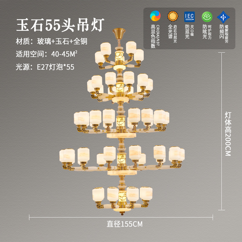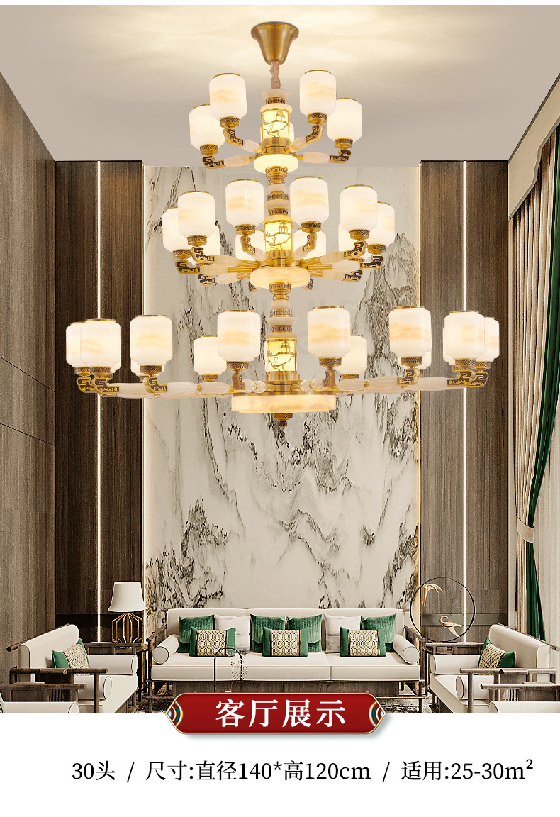 새로운 중국 스타일 모든 구리 거실 램프 현대 간단한 중국 스타일 호텔 홀 럭셔리 샹들리에 광동 중산 램프스토어 가기