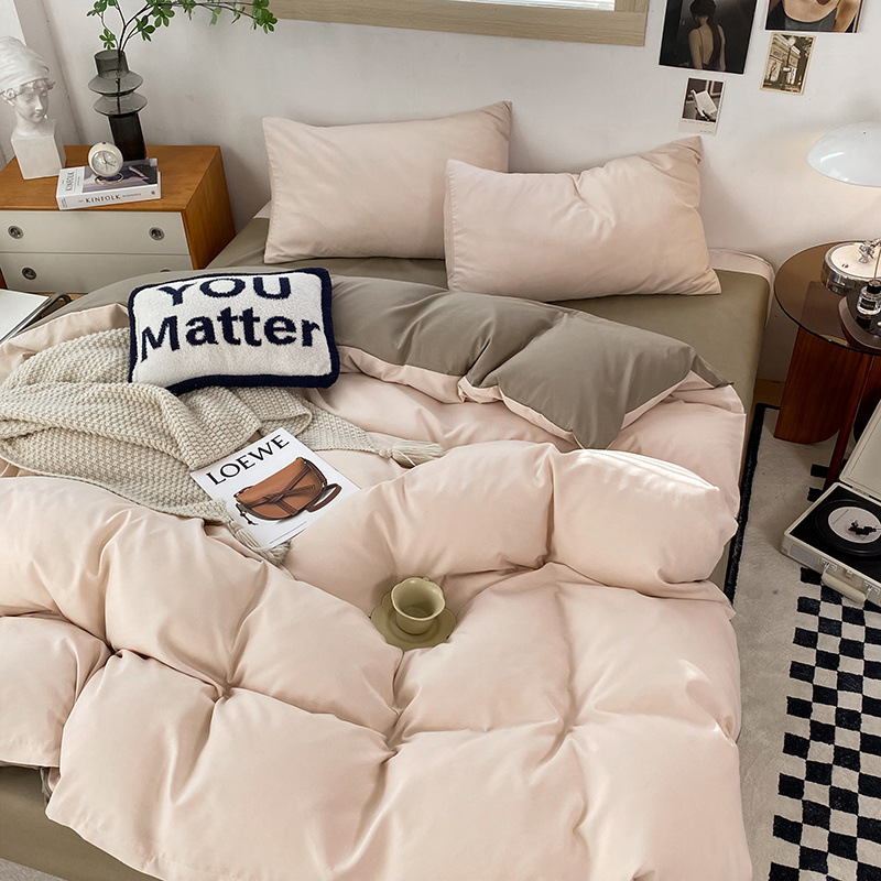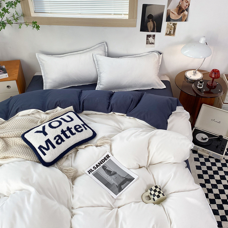 4 피스 세트 씻은 면화 간단한 침구 퀼트 커버 싱글 더블 학생 기숙사 침대 시트 3 피스 세트 투피스 세트 공장스토어 가기