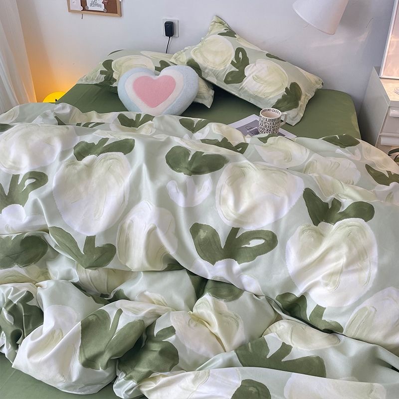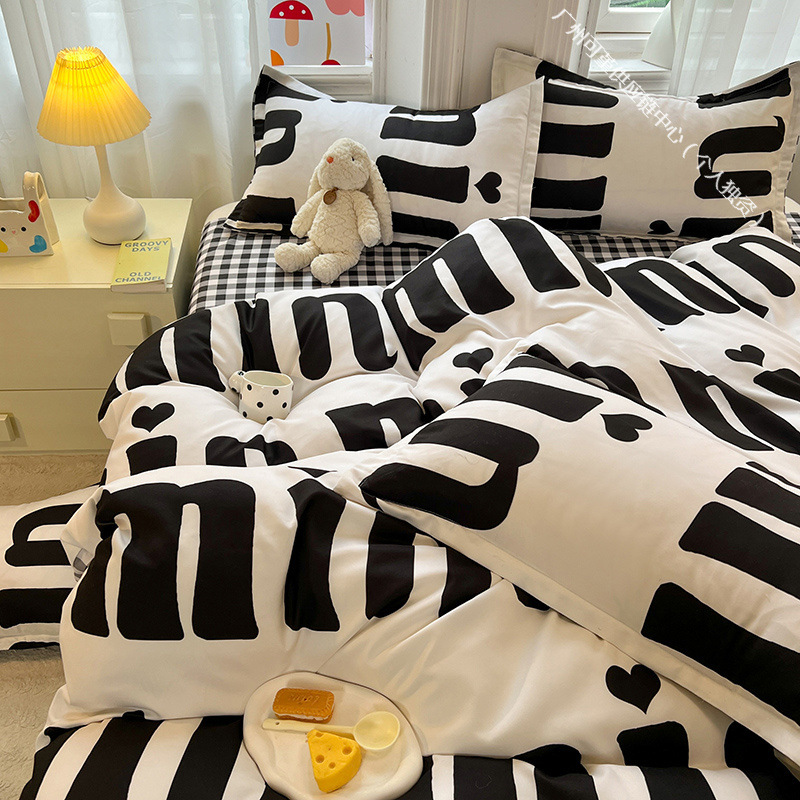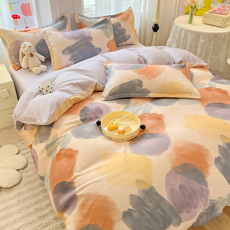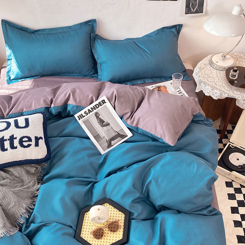 4 피스 세트 씻은 면화 간단한 침구 퀼트 커버 싱글 더블 학생 기숙사 침대 시트 3 피스 세트 투피스 세트 공장