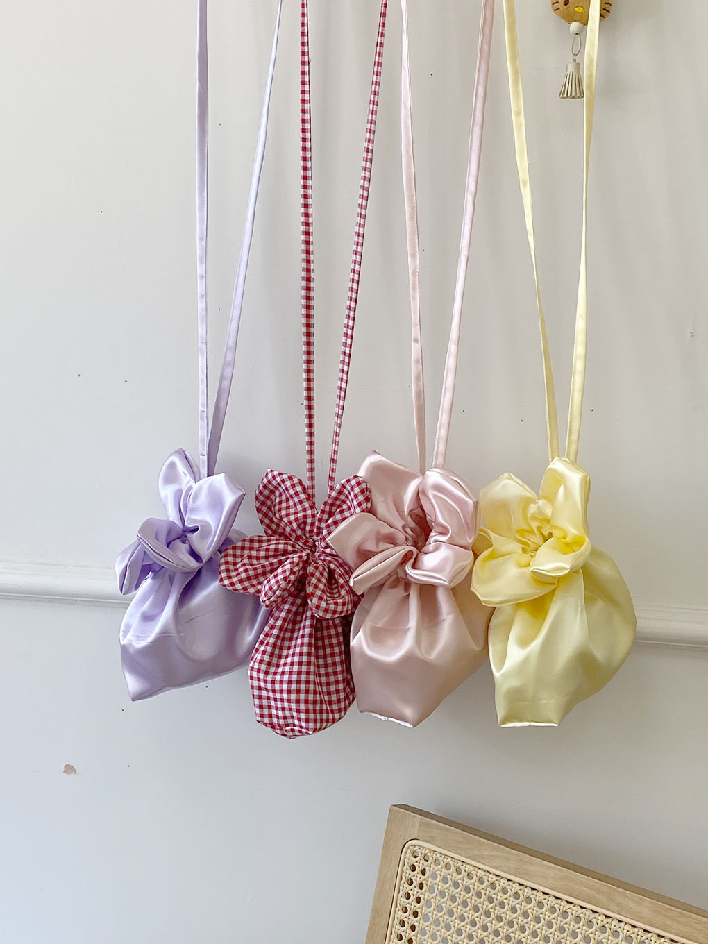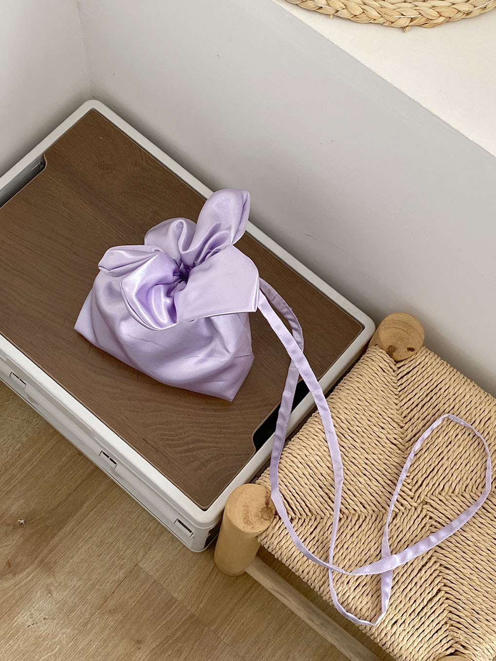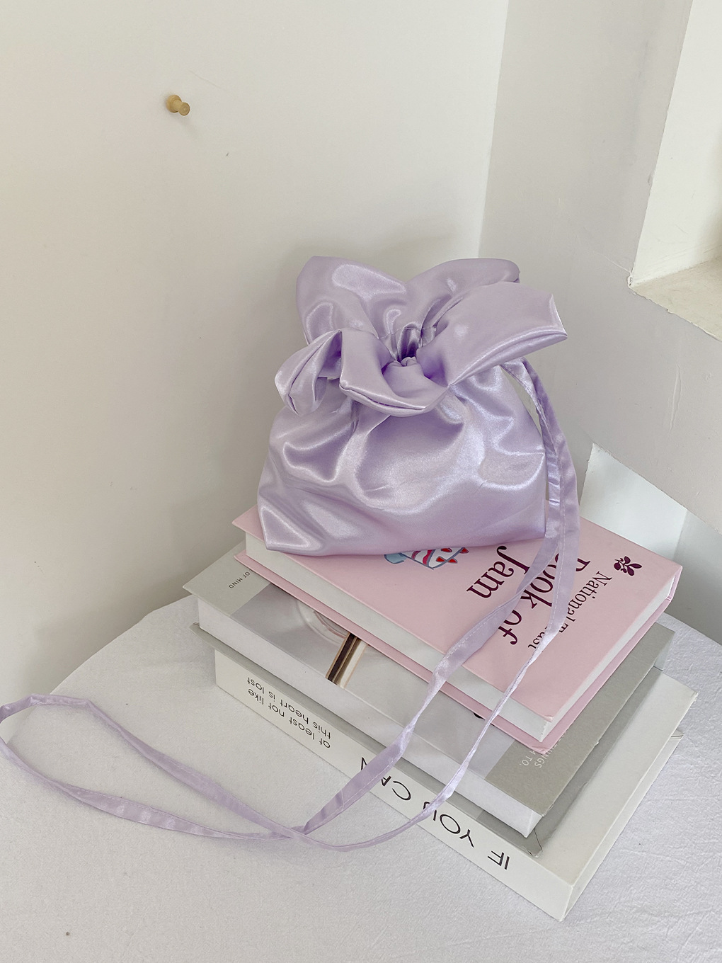• 크로스바디 드로스트링 플라워 백 - 퍼플 새틴