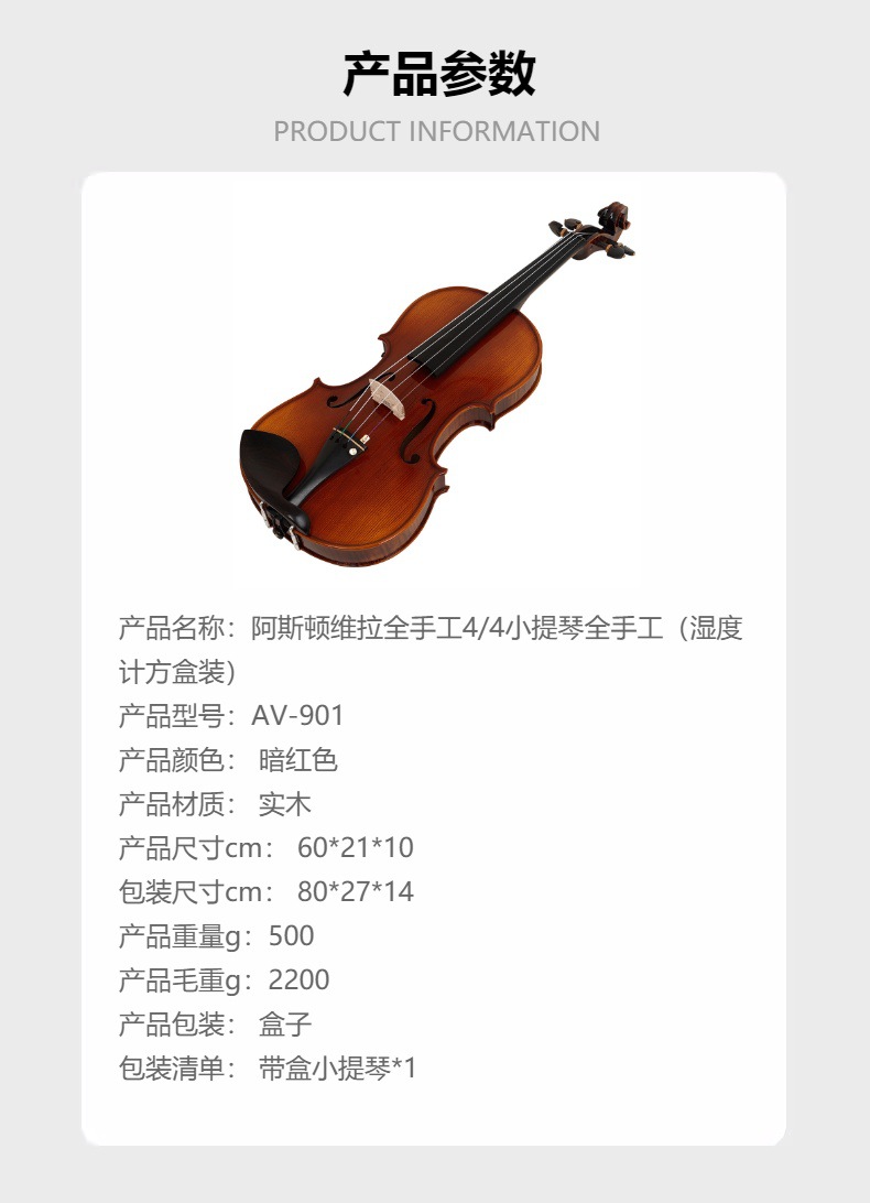 애스턴 빌라 4/4 모든 단단한 나무 손으로 조각한 바이올린 스프루스 패널 메이플 백 사이드 패널 악기 도매