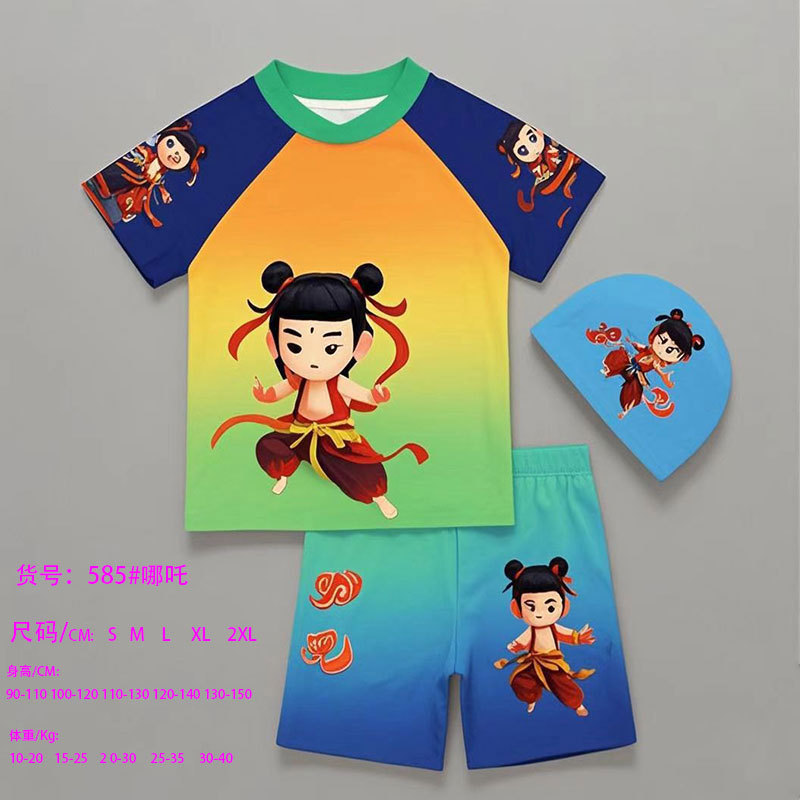 공장 도매 새로운 어린이 네자 마술 소년 바다 만화 인쇄 3 피스 소년 수영복 수영복 수영복