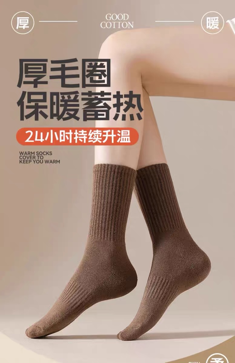 양말 여성의 가을과 겨울 두꺼운 따뜻한 테리 중장 양말 Maillard 컬러 긴 길이 쌓인 양말 다크 브라운 Stocking Zhuji스토어 가기