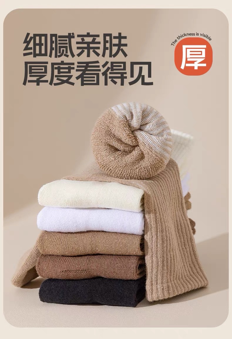 양말 여성의 가을과 겨울 두꺼운 따뜻한 테리 중장 양말 Maillard 컬러 긴 길이 쌓인 양말 다크 브라운 Stocking Zhuji