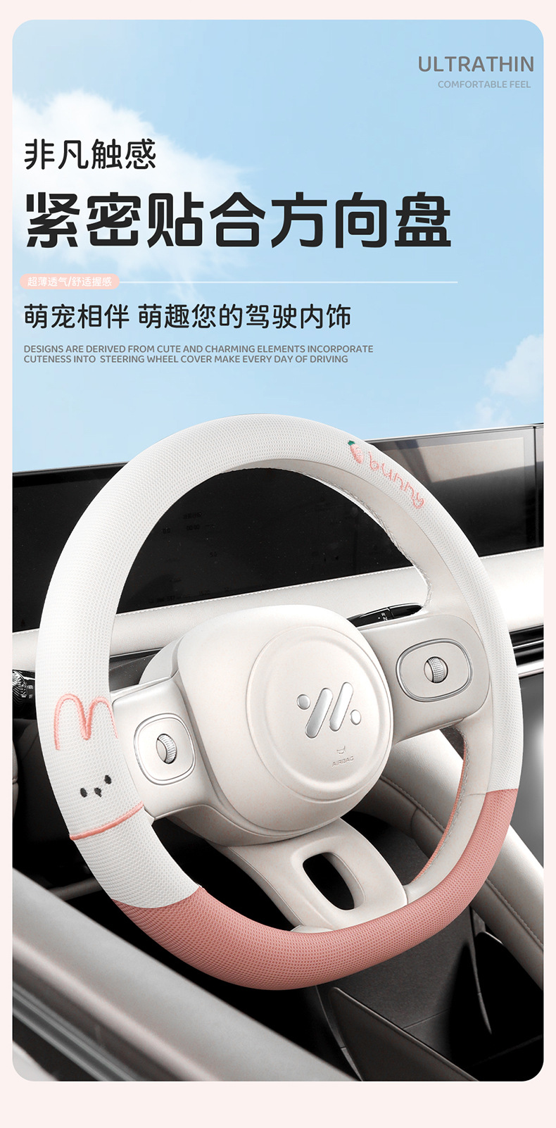 사계절 운전용 아이스 실크 스티어링 휠 커버, 부드러운 질감, 섬세한 느낌, 미끄럼 방지 및 내마모성, O형, D형, 더블 D형 만화