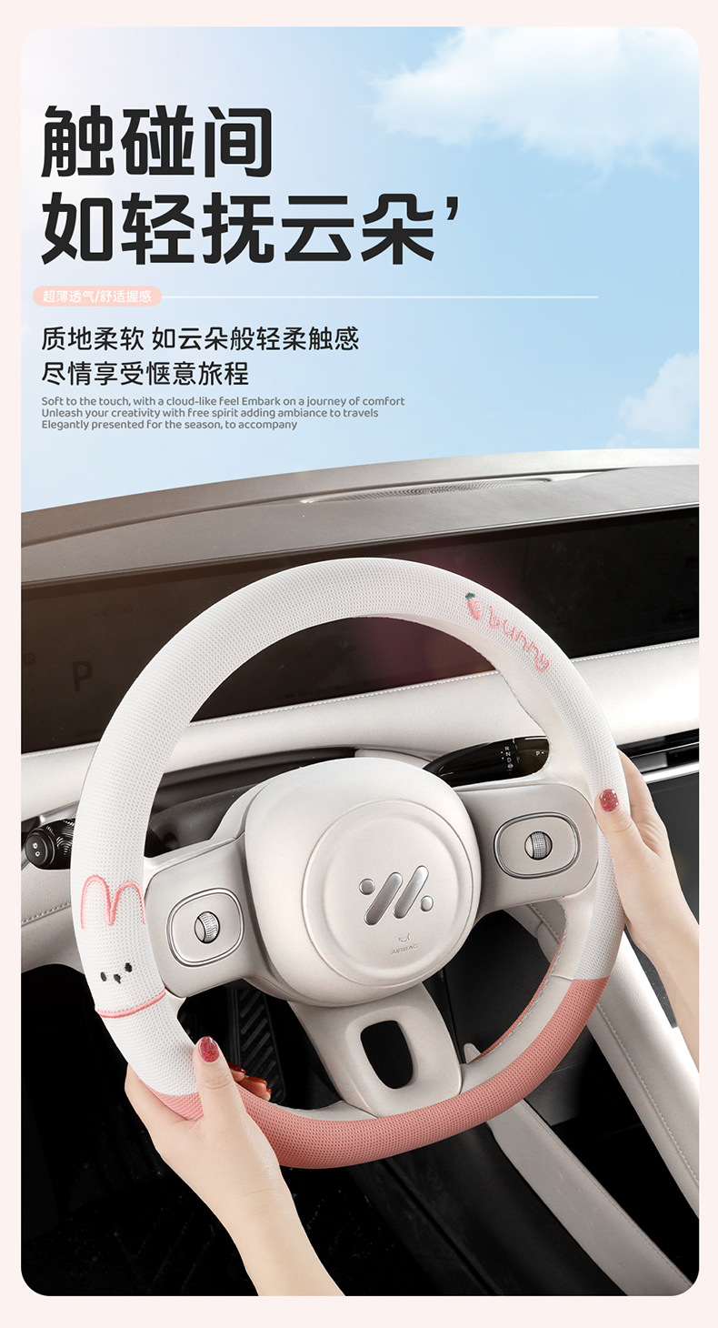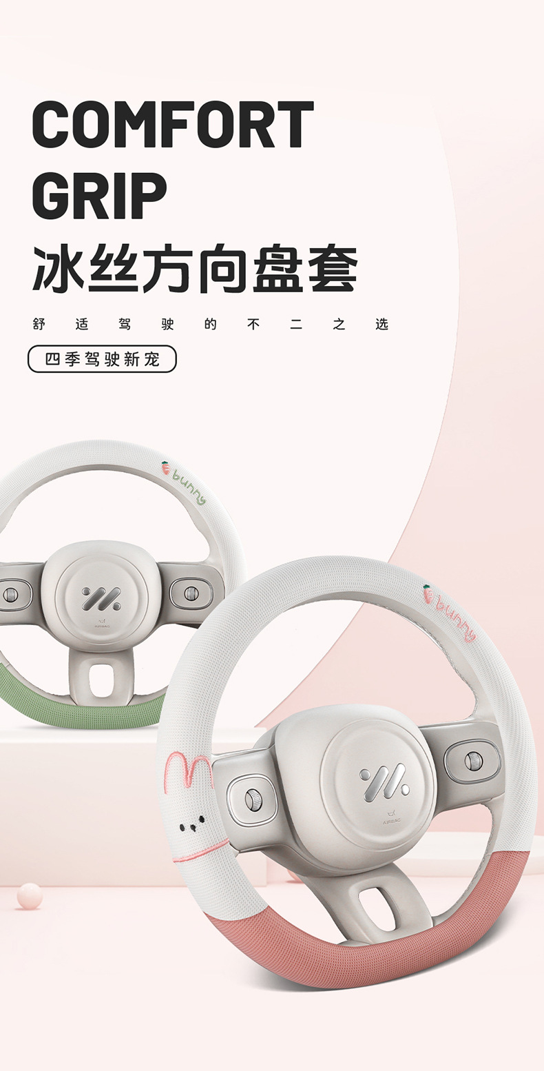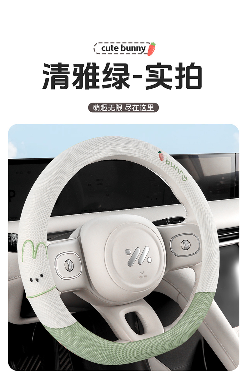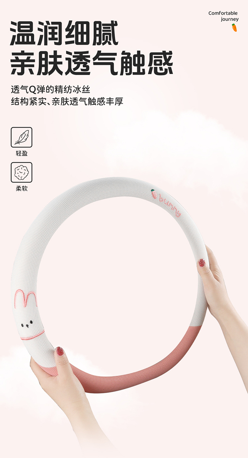 사계절 운전용 아이스 실크 스티어링 휠 커버, 부드러운 질감, 섬세한 느낌, 미끄럼 방지 및 내마모성, O형, D형, 더블 D형 만화스토어 가기