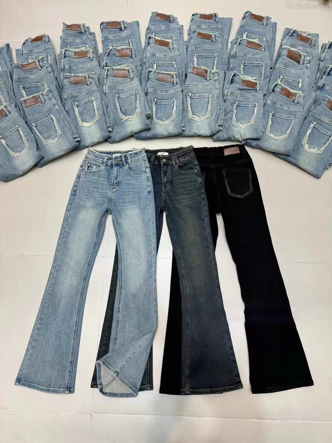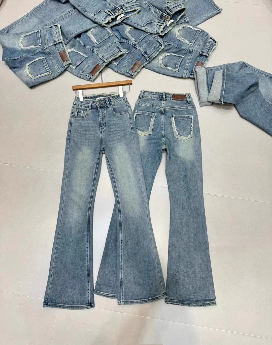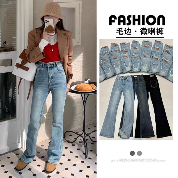 2024 년 봄에 여성을위한 밝은 색상의 하이 웨이스트 모피 엣지 마이크로 청바지 새로운 디자인 슬림 핏 슬리밍 바닥 길이 바지스토어 가기